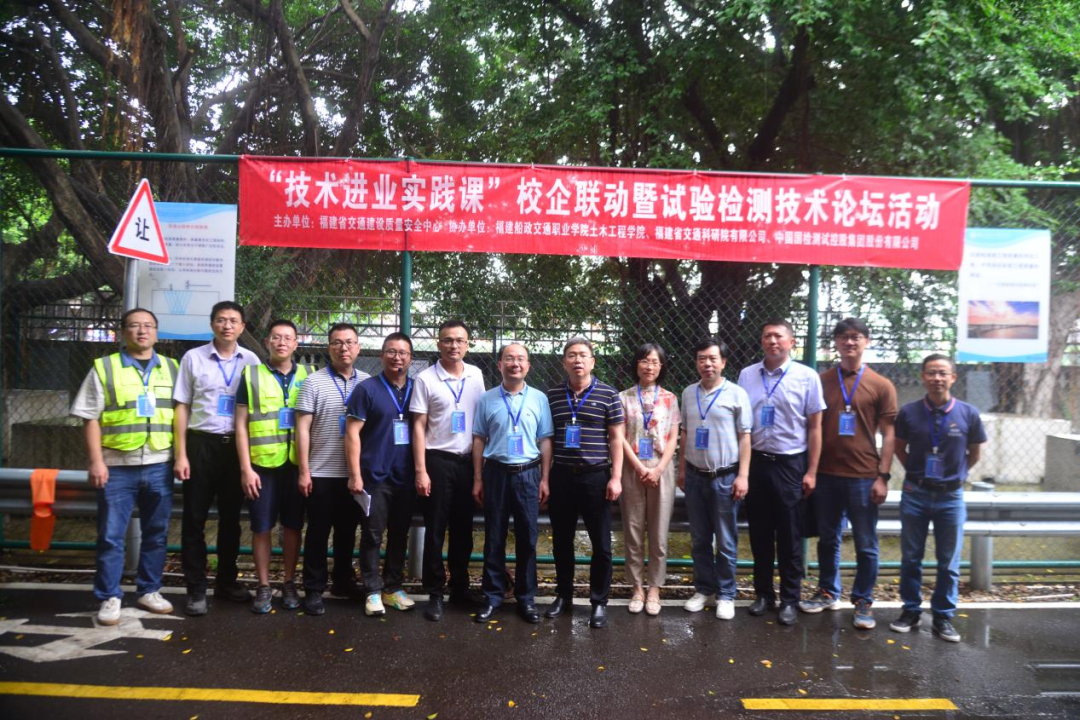 在开展的“技术进业实践课”校企联动暨试验检测技术论坛活动中,由福建省交通科研院有限公司、福建省交设工程试验检测有限公司、福建省交通建设工程试验检测有限公司、福建省建筑工程质量检测中心、福建省永正工程质量检测有限公司等五家甲级检测机构组成的技术服务团以精准化专业技术宣传和现场咨询服务为抓手,向在场的学生代表及各单位技术人员讲解路面、桥梁、隧道、交通安全附属设施及基桩检测等试验检测技术,共同探讨影响检测能力优化提升的难点问题。