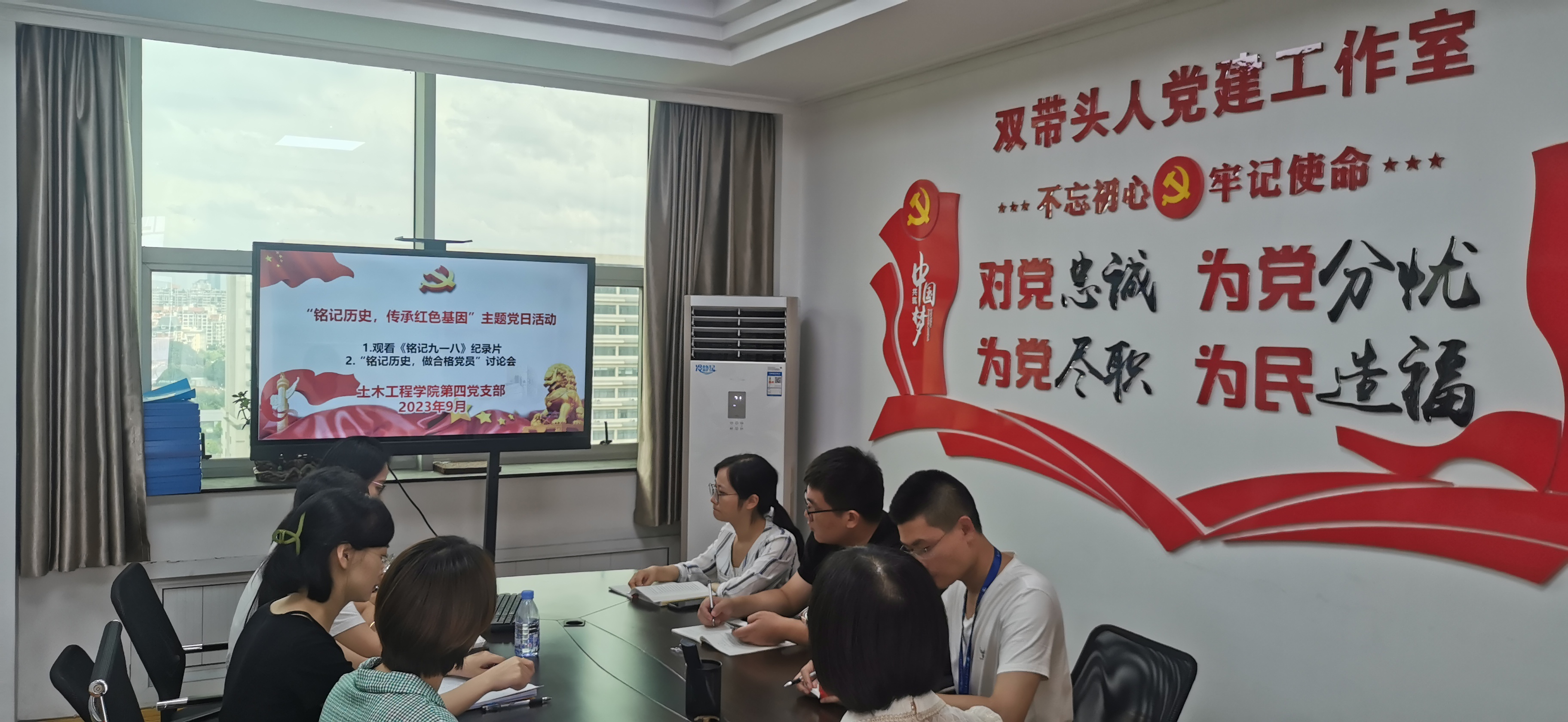 为纪念“九一八事变”92周年,激励党员教师铭记历史,缅怀先烈,土木工程学第四党支部于9月27日上午在创新楼1011组织教师党员开展“铭记历史,传承红色基因”主题党日活动,会议由党支部书记黄颖主持。