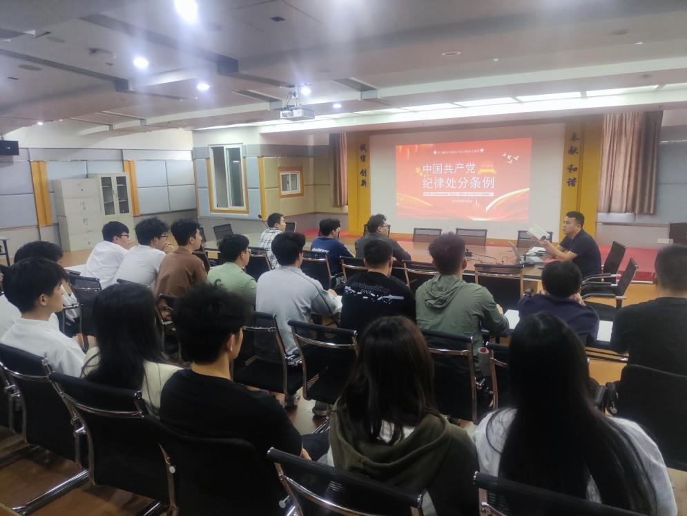 本次教育大会,首先进行了《中国共产党纪律处分条例》的学习,教育同学们在充分认识守纪律、讲规矩重要意义的同时,毕业生党员应该做到遵纪守法,将党纪内化于心,外化于行。其后,会议结合开展“关口前移”党规党纪教育的深刻初衷和必要意义。教育毕业生党员需要时刻给自己敲响警钟,要深知形成坚定的理想信念并不是一蹴而就、一劳永逸的,因此,走向工作岗位后,党员同学们也应该将党性的修养和业务知识的修炼同步进行。最后,教育毕业生离校前夕,要争做爱校荣校的排头兵、心理健康的守护人、安全稳定的维护者;在未来的工作和生活中,能够守正创新创享家国盛世,永葆本色常念平凡人生!