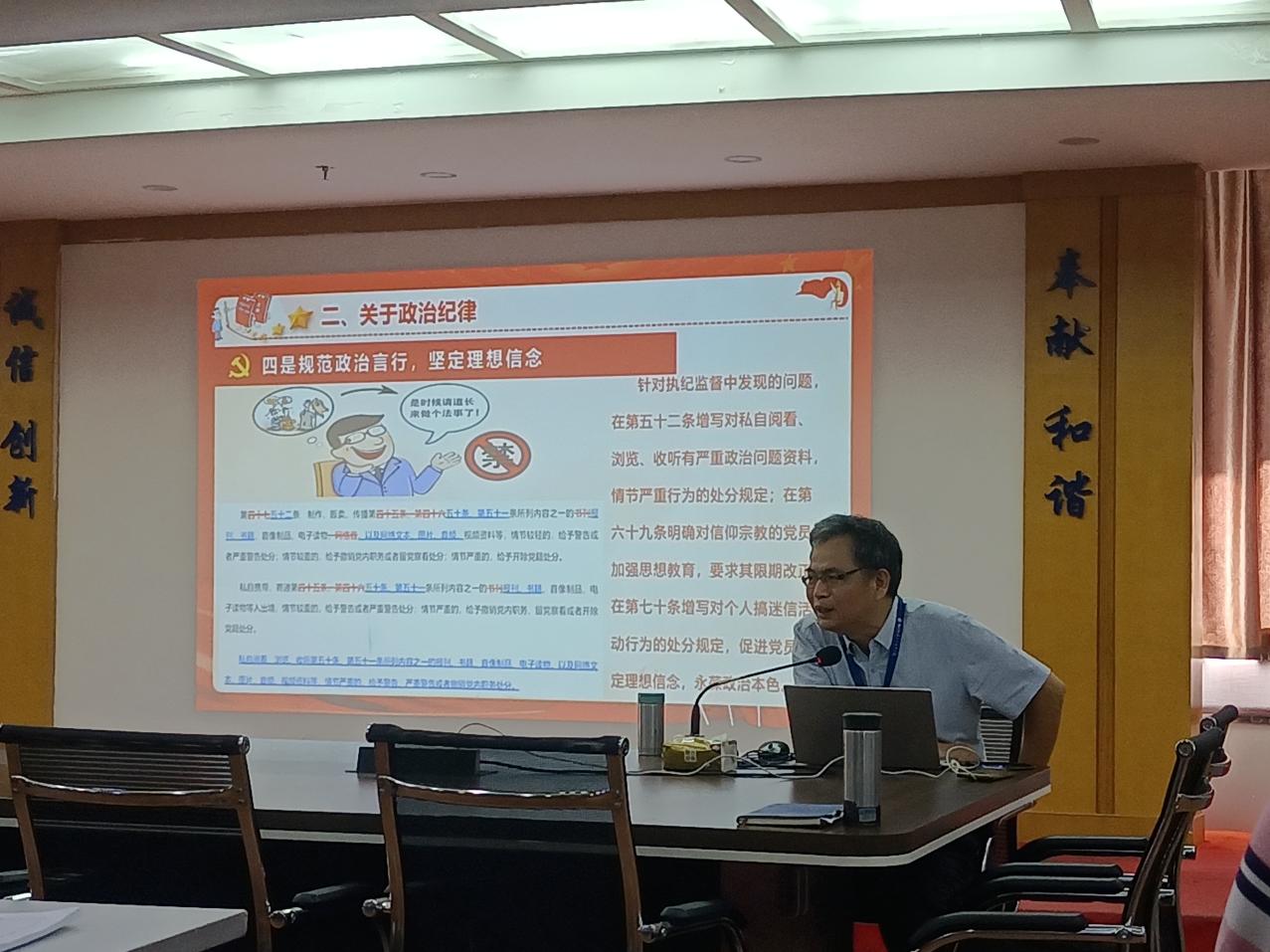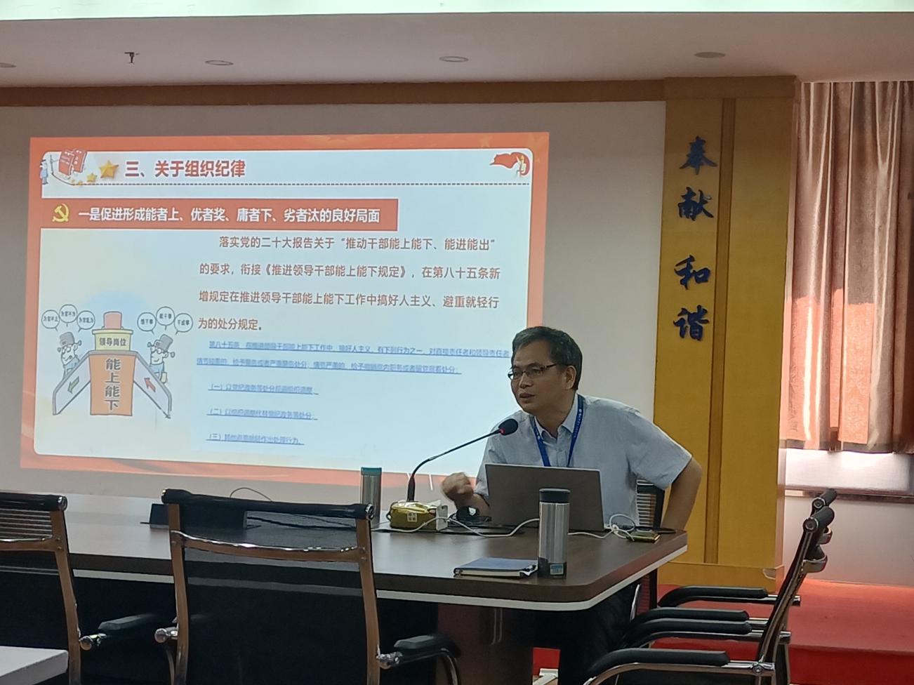 高杰同志从深刻认识《条例》修订的重要意义、准确把握《条例》主要内容、切实抓好学习《条例》贯彻落实等三个方面,同时结合典型案例重点对2023版本《条例》中关于政治纪律、组织纪律、廉洁纪律、群众纪律、工作纪律和生活纪律等六个方面进行了全面、系统、深入地讲解,为党员更加准确理解和掌握《条例》内容起到了引领作用。