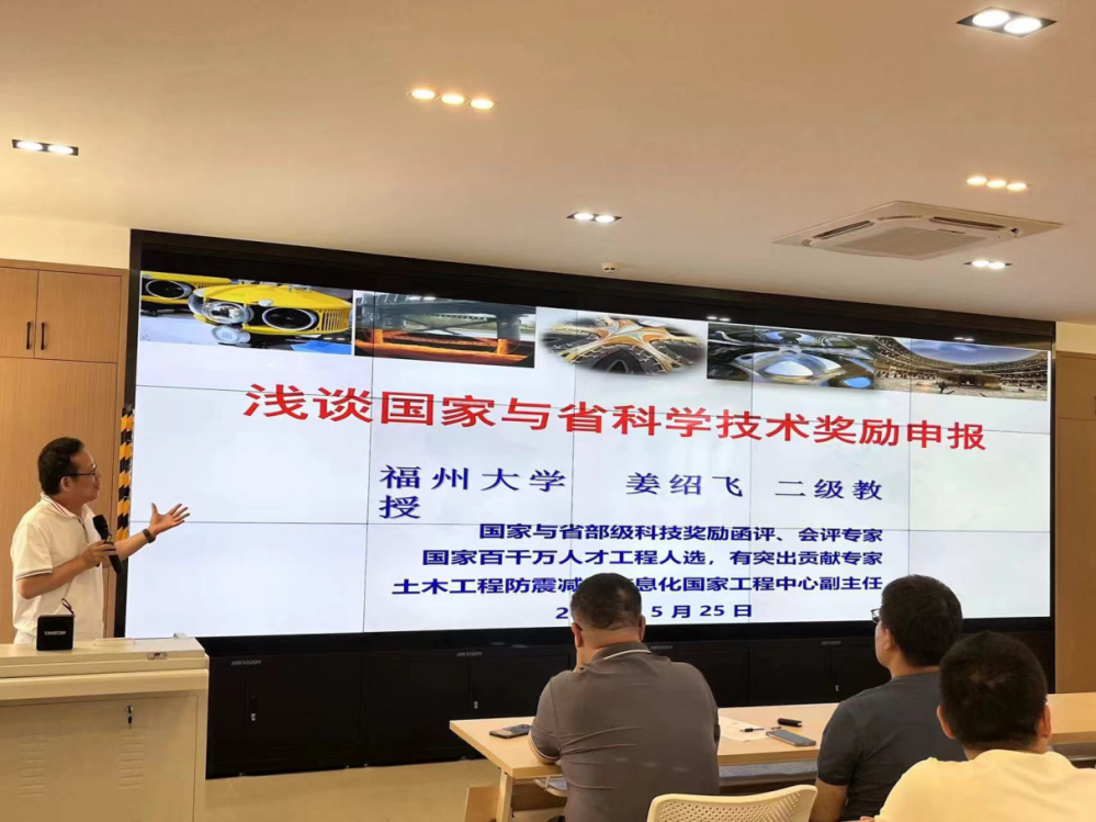 活动邀请了福州大学土木工程学院姜绍飞教授作主题讲座。姜绍飞教授是国家百千万人才工程人选、国家有突出贡献中青年专家和国务院政府特殊津贴专家,并多次获得省部级科技奖。讲座以“浅谈国家与省科学技术奖励申报”为题,从国家级及省级科学奖励设置、各类奖项申报要点、奖项提名书撰写方法等几方面,为参会的博士教师们作了精彩报告,大家纷纷表示受益匪浅。