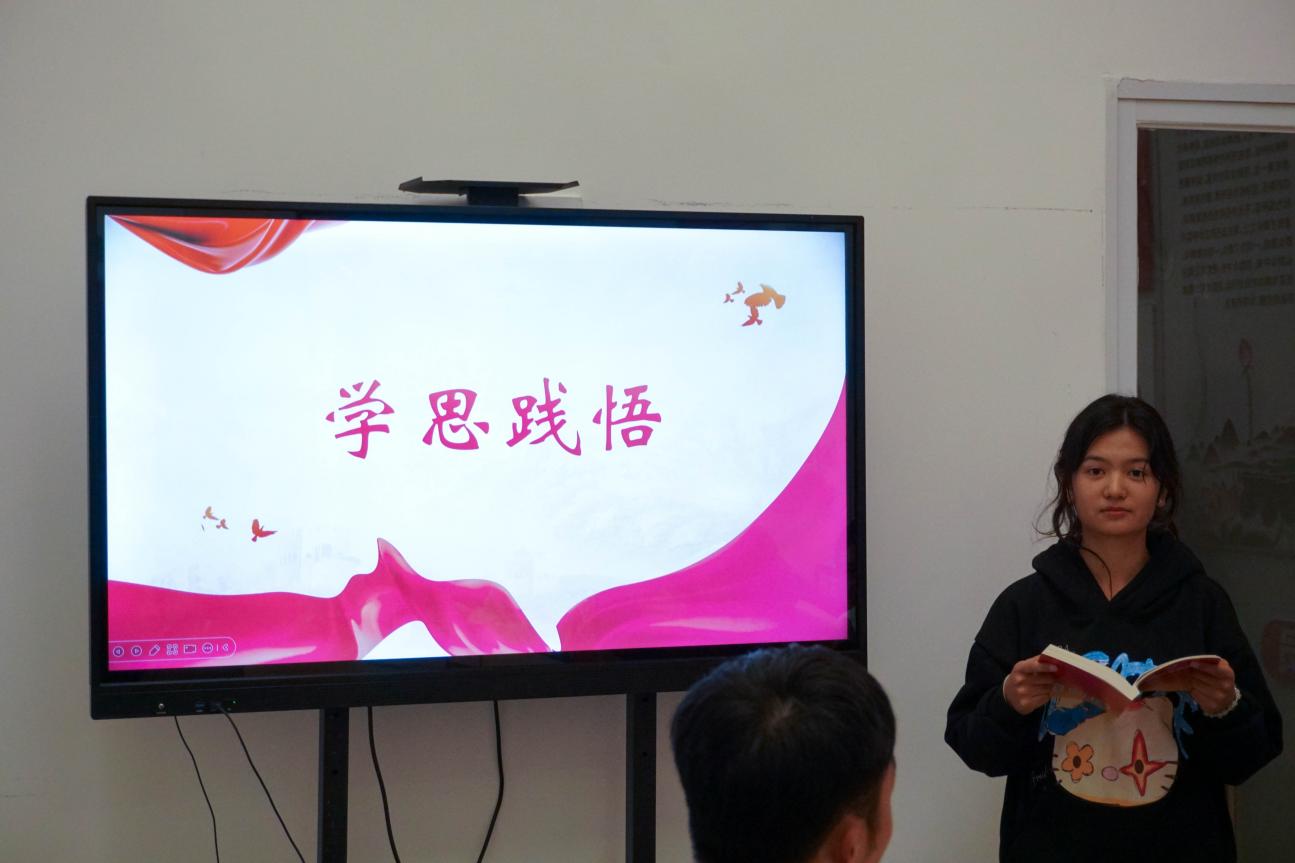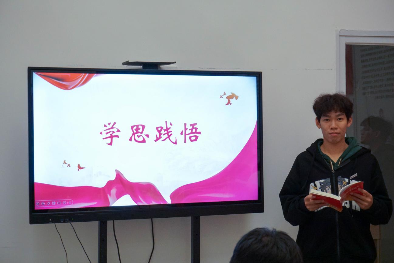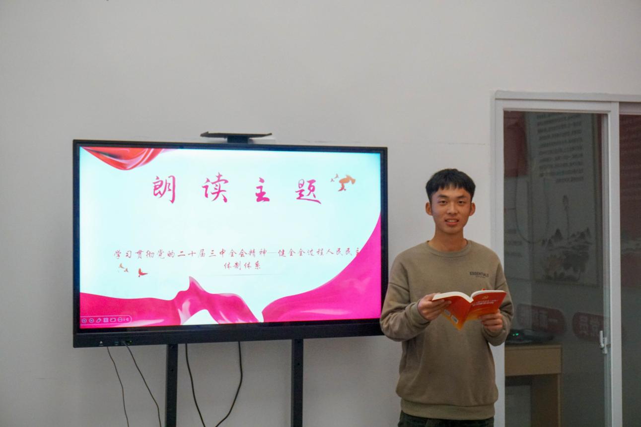 分享会上,2024级道路与桥梁工程技术2班班长唐韶宇,土木学院合唱团成员,国旗护卫队社团成员,领学朗读了《中共中央关于进一步全面深化改革、推进中国式现代化的决定》(后文简称《决定》)“健全全过程人民民主体制体系”部分。