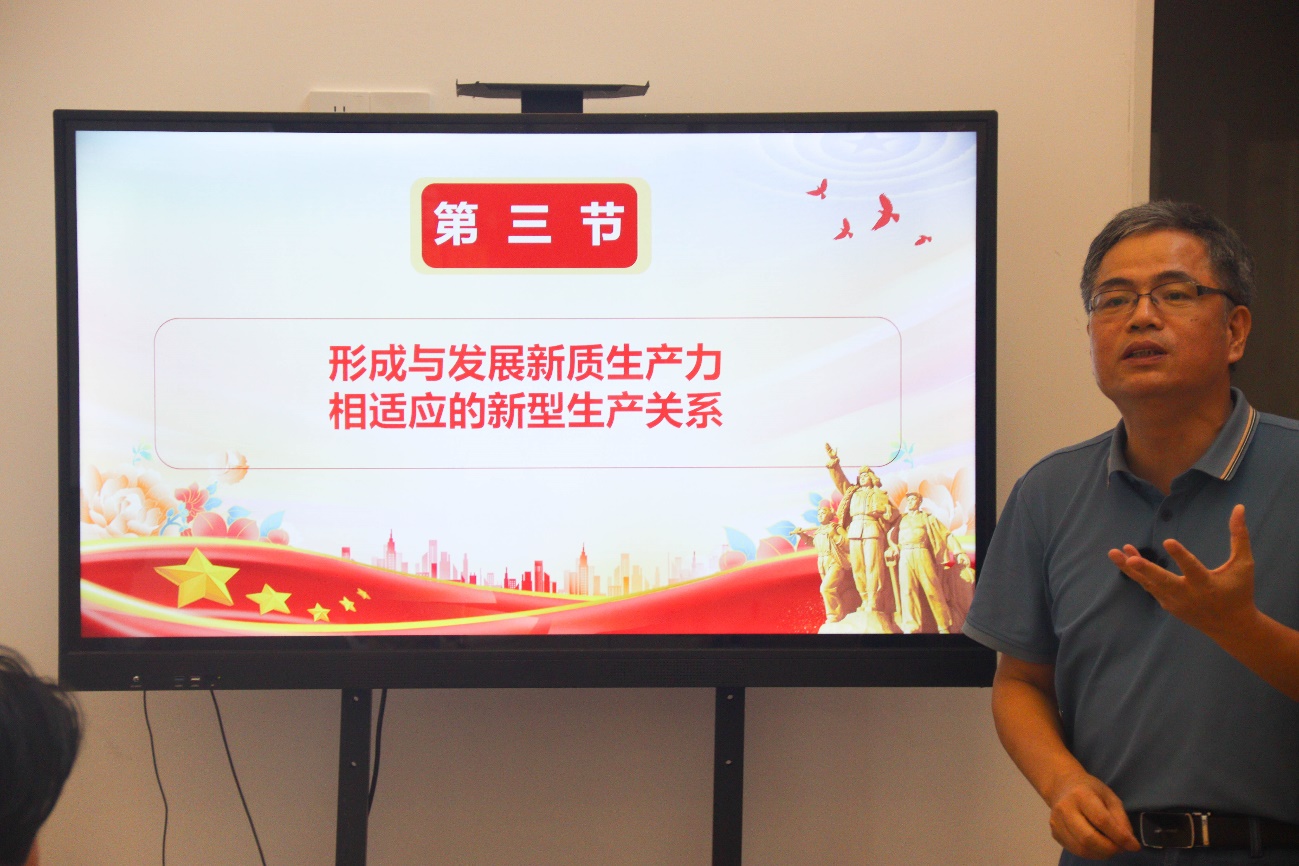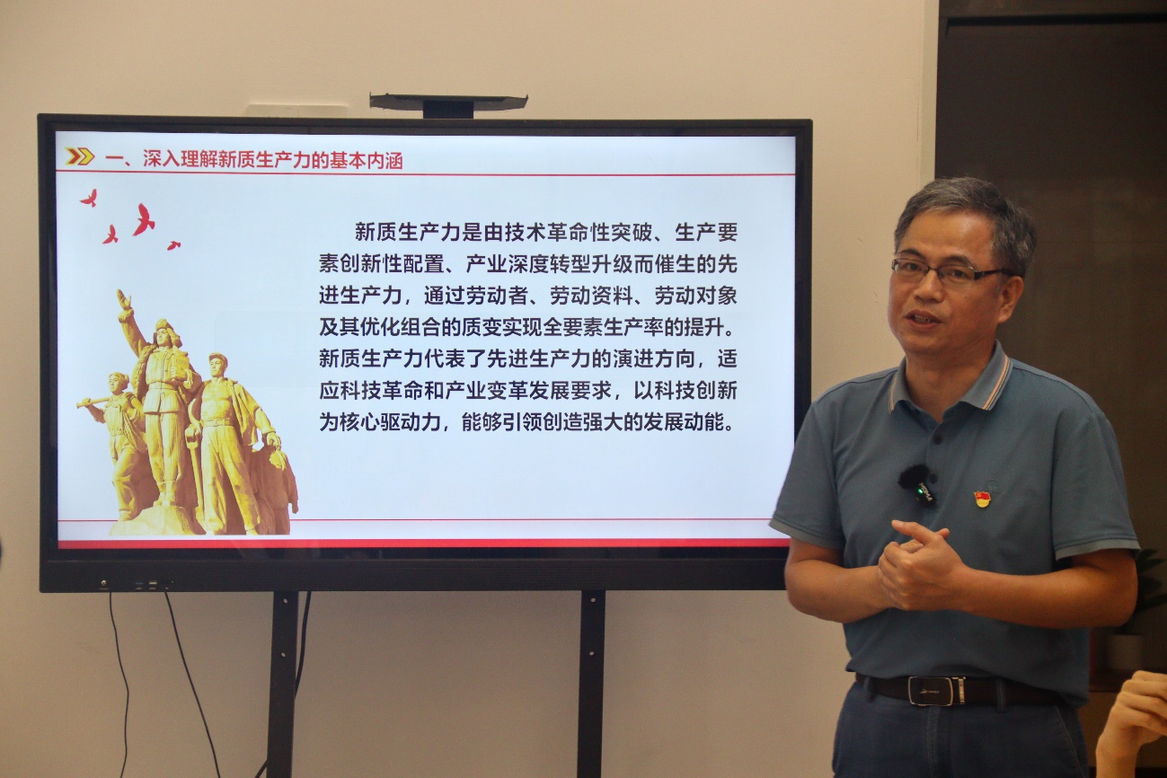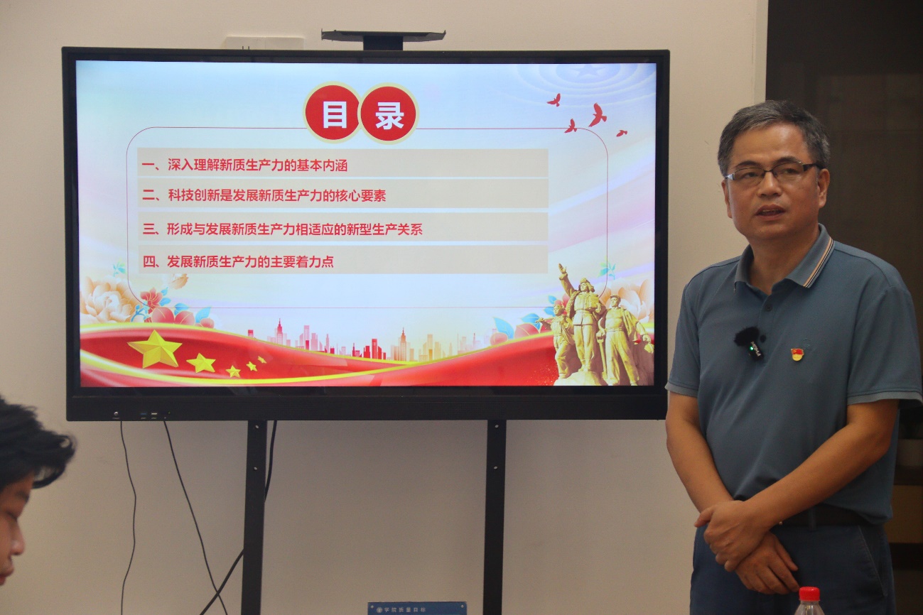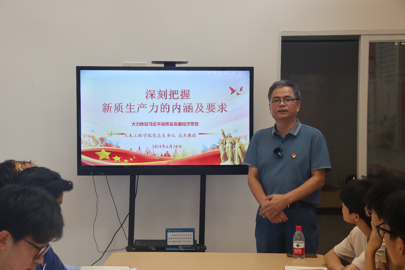 为大力推动习近平总书记在中共中央政治局第十一次集体学习时强调,加快发展新质生产力,扎实推进高质量发展,进一步帮助船政学子深刻认识新质生产力,为新质生产力蓄势赋能,2024年6月28日下午,土木工程学院党总支书记高杰教授在福航园“一站式”学生社区服务中心思政引领室以“深刻把握新质生产力的内涵及要求”为题给青年学生上专题思政课。