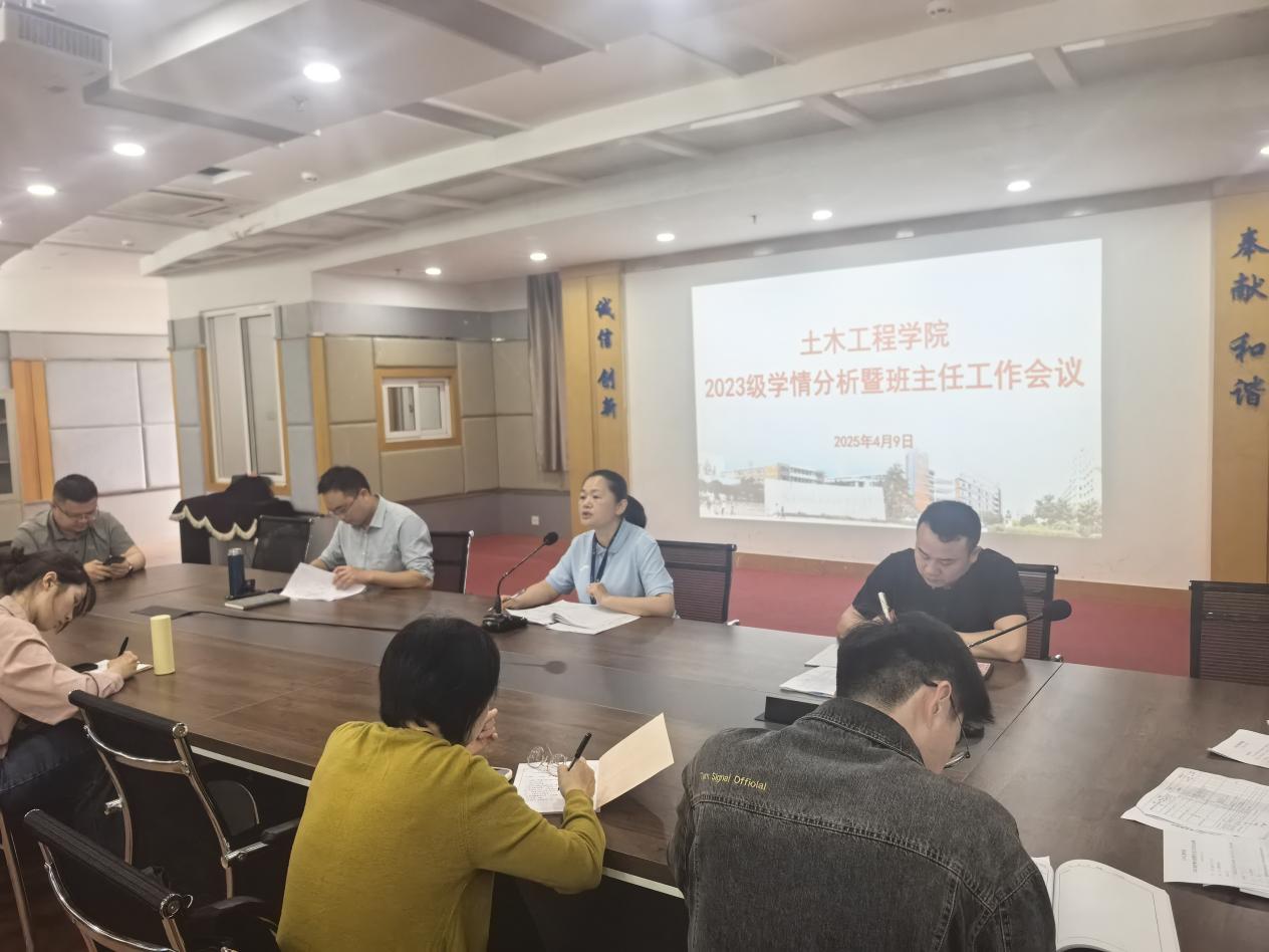 为坚守“立德树人”初心使命,锚定新时代教育强国建设目标,深耕土木工程学院“三全育人”大思政格局,凝聚班主任与辅导员协同育人合力。2025年4月9日,我院于福船园创新楼1007召开2023级学情分析暨班主任工作会议。学院党总支副书记任颖卿,2023级辅导员以及2023级班主任参加本次会议。