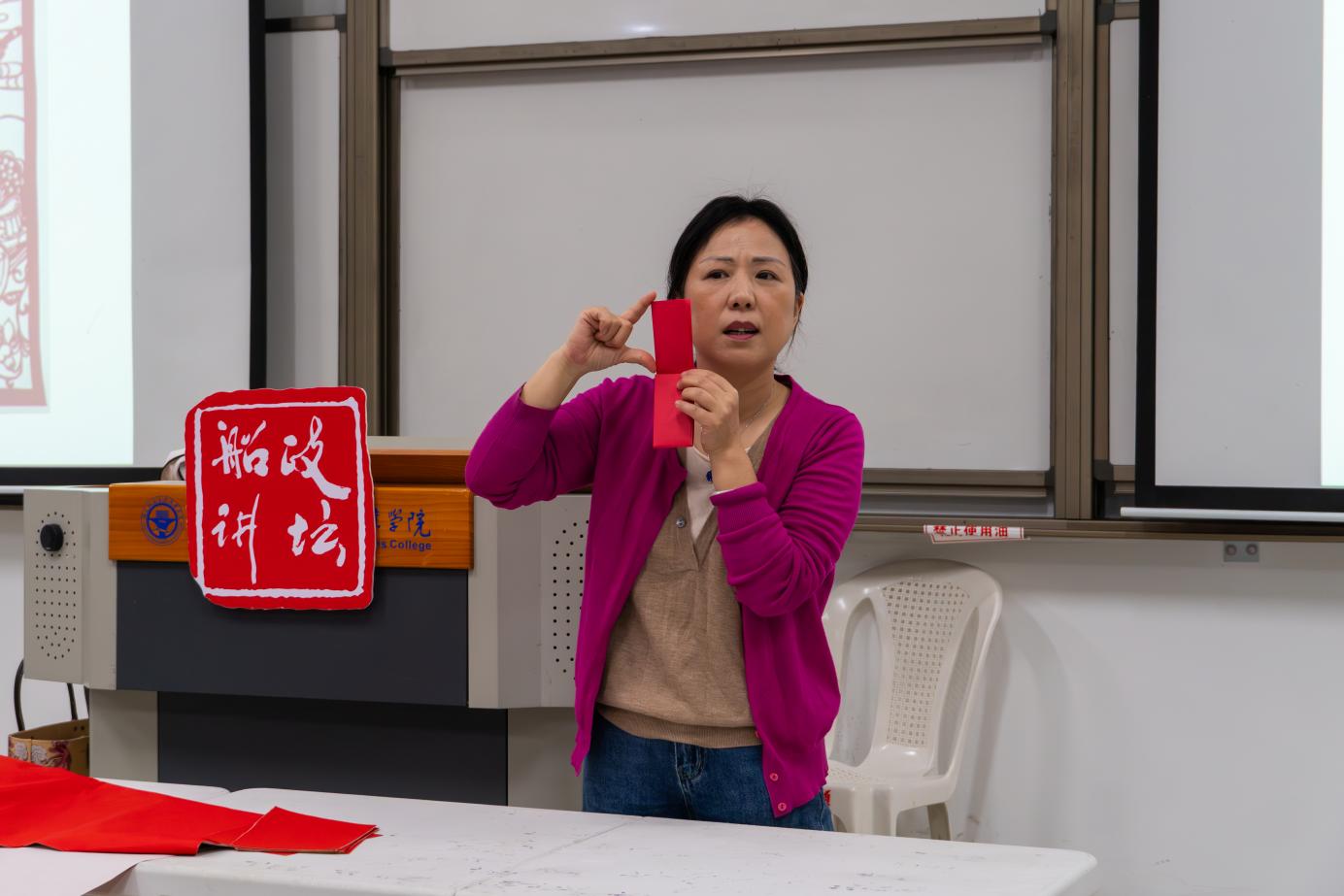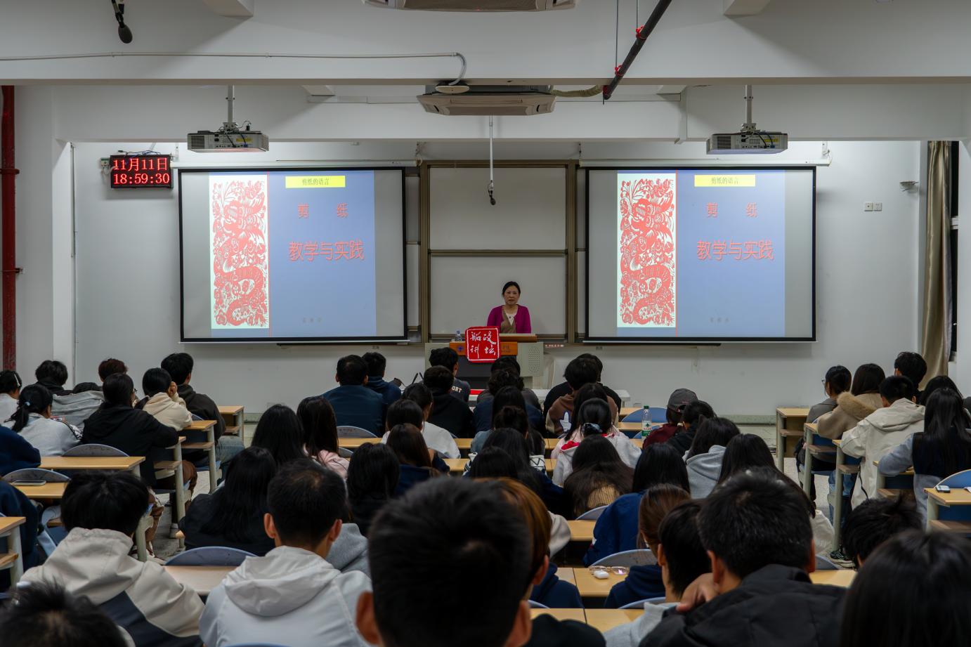 剪纸是中国民间美术的璀璨明珠,承载着中华民族数千年的文化基因与审美智慧。2025年11月11日,土木工程学院特邀福州剪纸非遗传承人董雅萍老师,于福船园创新楼301作题为“纸韵剪影:民间剪纸鉴赏”的精彩讲座,师生共同踏上一场领略民间剪纸艺术魅力的探寻之旅。