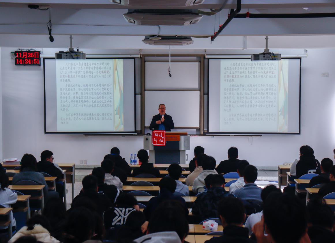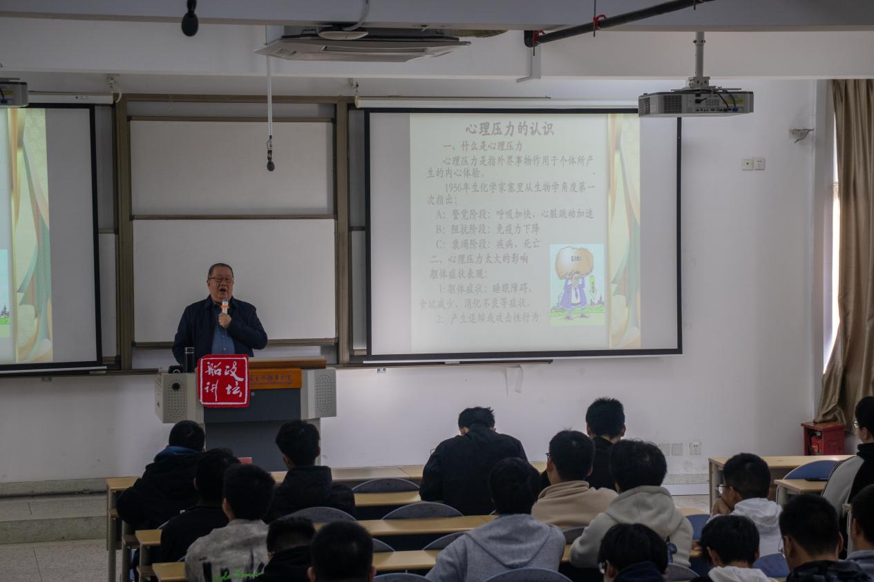 讲座伊始,林大熙教授以贴近校园生活的案例切入,从学业压力、人际交往、自我期待等多个维度,深入剖析了当代大学生心理压力的主要来源。林教授结合心理学理论与丰富的实践经验,用通俗易懂的语言拆解压力产生的心理机制,让同学们清晰认识到“适度压力是动力,过度压力是阻力”的辩证关系。