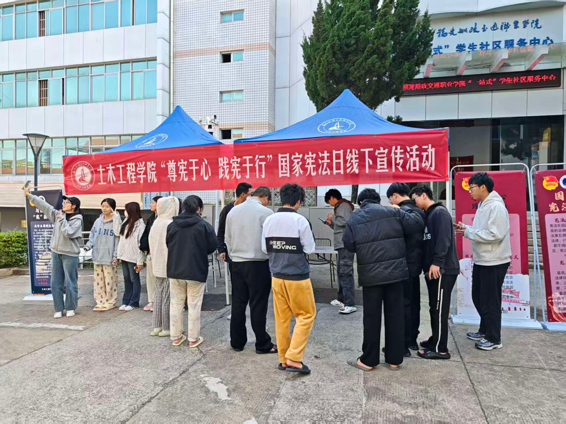 为深入学习宣传贯彻习近平法治思想,推动宪法精神在青少年心中落地生根。2025年12月4日,在第十二个国家宪法日来临之际,土木工程学院于福航园“一站式”学生社区服务中心开展“尊宪于心 践宪于行”国家宪法日线下宣传活动。