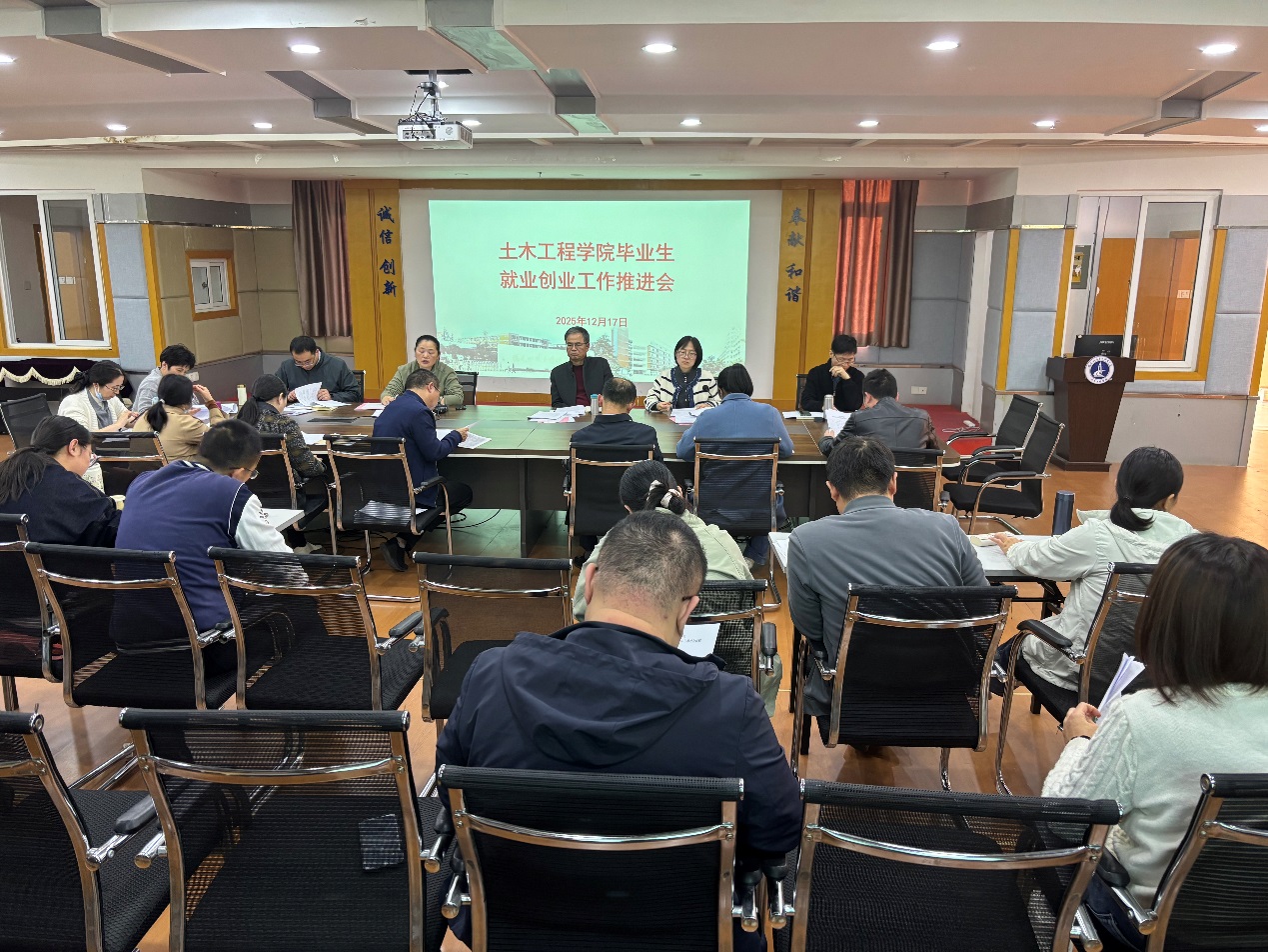 会议总结了学院2025届毕业生就业情况,并基于《土木工程学院2026届毕业生就业创业推进方案》以及毕业生实际情况对2026届毕业生就业创业工作进行详细安排部署。