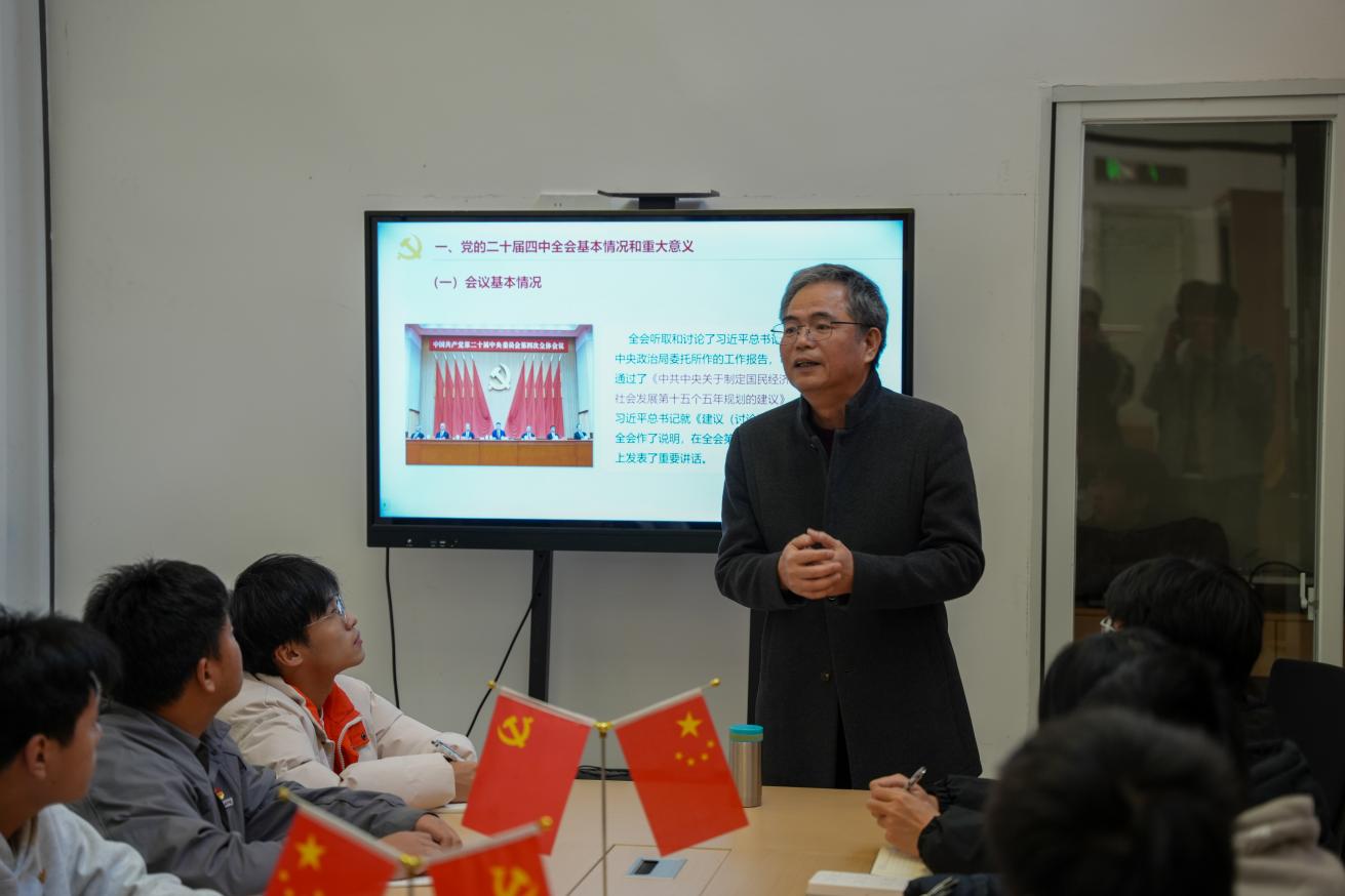 为深入学习贯彻党的二十届四中全会精神,引导广大学生把思想和行动统一到全会精神上来,2025年12月26日,土木工程学院党总支书记高杰教授面向2024级、2025级学生骨干、少数民族学生代表,在福航园“一站式”学生社区开展了一场主题鲜明、内容详实的党的二十届四中全会精神宣讲会。