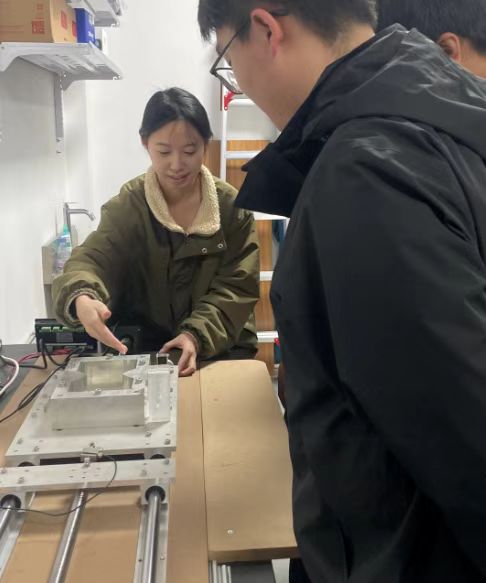讲解结束后,江景杉带领大学生科研项目团队成员严格按照规范流程进行实操,完成土样制备、仪器校验、填土压实、拉伸观测及数据记录、样品留存与设备清理等系列实验操作。