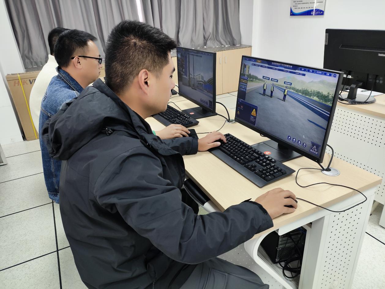 学院充分发挥其在职业教育、尤其是交通建设领域安全培训方面的专业优势与资源整合能力,为培训及测评提供了强有力的技术平台与组织实施保障。本次测评的核心亮点是采用了先进的安全隐患排查虚拟仿真软件。该软件深度融合三维仿真技术与施工安全知识,构建了高度还原的施工现场虚拟环境,可模拟预制T梁运输与架设、桥面铺装施工、衬砌台车作业、沥青面层摊铺等23项关键施工工序中潜藏的安全隐患。
