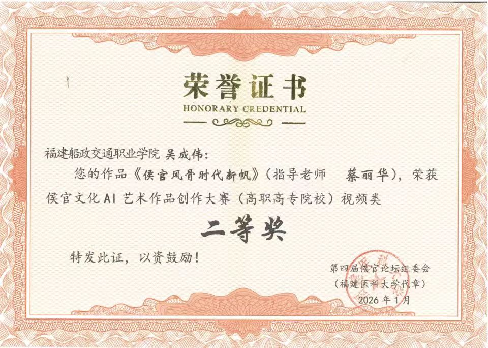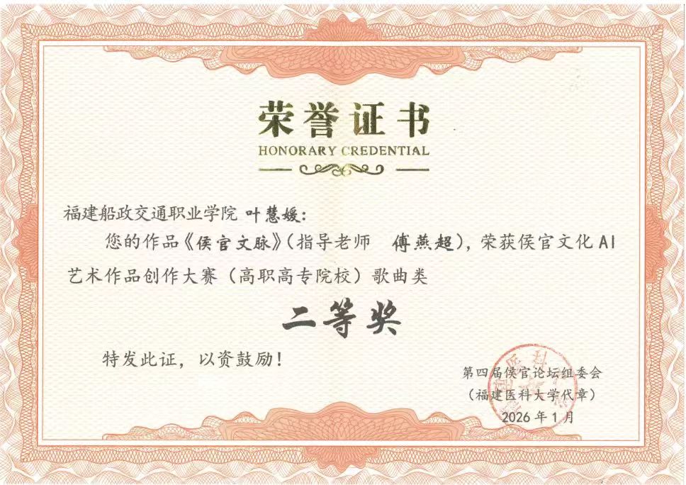 近日,由福建省教育厅指导、福建医科大学主办的侯官文化AI艺术作品创作大赛公布获奖名单。土木工程学院选送的2件作品脱颖而出,在视频类及歌曲类赛道中获二等奖2项。