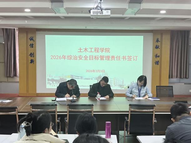 会议最后,各教研室主任、实训中心主任分别与土木学院党政领导签订《2026年综治安全目标管理责任书》。此举旨在通过明确的安全管理职责与要求,将责任落实到人,持续推进实训场所及各教学办公区域的安全稳定。安全工作“只有起点,没有终点”。全院师生要继续秉持“时时放心不下”的责任感,将安全意识融入到教学、科研和管理的全过程。
