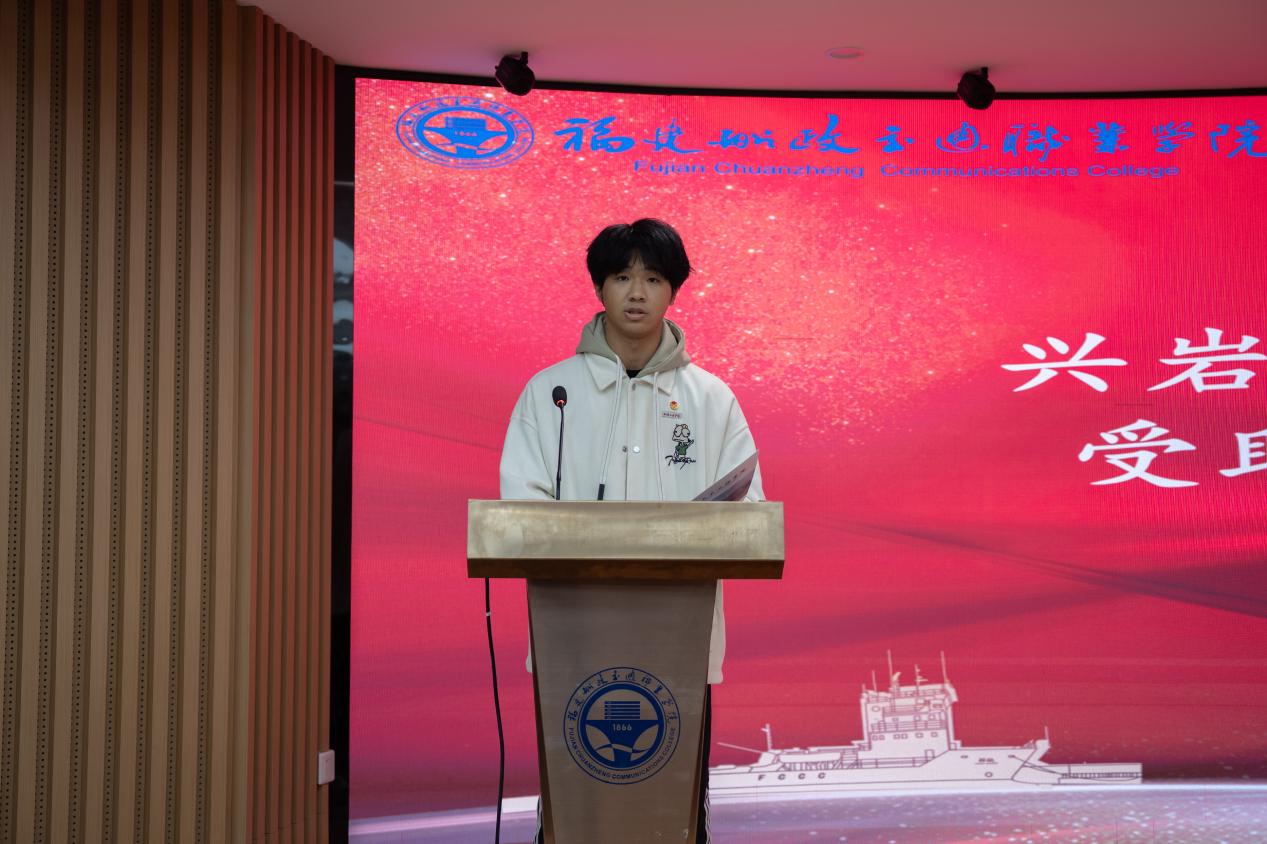 随后,学生工作部(处)部长王心金宣读了2025年度“兴岩集团奖助学金”学生名单。本次共有徐明君等10名品学兼优的学生获得“兴岩集团卓越奖学金”,周迎鸿等30名家庭经济困难学生获得“兴岩集团自强助学金”。