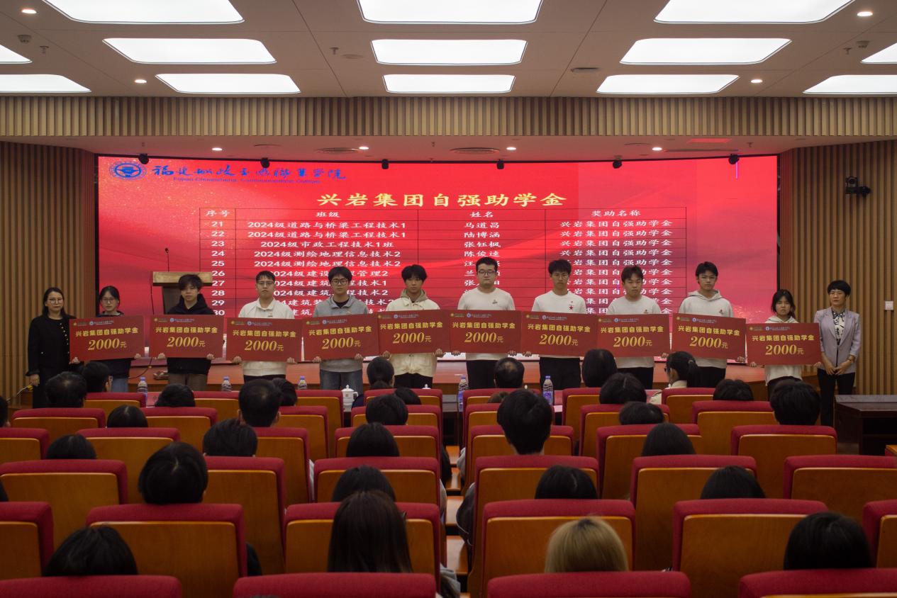 “兴岩集团奖助学金”是福建省兴岩建设集团有限公司于2023年在我院捐资100万元设立,旨在奖励和资助我院土木工程学院德智体美劳全面发展的优秀学生及品学兼优、家庭经济困难学生,本次是兴岩集团奖助学金第三次发放,至今累计已有120名同学被这份爱心温暖。