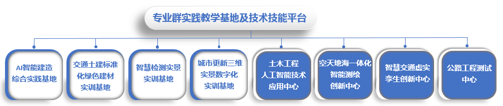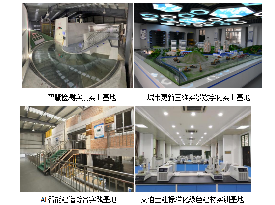 交通土建专业群实训基地是国家高等职业院校创新行动计划校企共建生产性实训基地,获批第48届世界技能大赛数字建造项目中国集训基地,入选福建省职业院校高水平专业化产教融合实训基地。精准对接公路行业数字化转型升级核心需求,打造智慧公路职教应用大模型,全面驱动实训基地数智化升级建设。与省内外近70余家规上企业合作共建涵盖智能建造、无人机智能巡检、智慧检测监测、智能养护于一体的国家级交通基础设施安全运维开放型区域产教融合实践中心,充分满足人才培养实训需求。职业技能等级认定资质覆盖全面,具备工程测量员、公路施工现场管理人员、公路养护工程技术人员、建筑信息模型(BIM)、无人机应用技术、路桥工程检测技术等多项职业技能等级证书的培训与考核资质。经过多年系统化建设与发展,实训中心已成为支撑各专业实践教学、科研创新、社会服务、对外交流的重要平台。基地现有校内各类实训场馆及科研场所建筑面积8000多平方米,室外实训场地约30000平方米,包含智慧交通虚实孪生创新中心、空天地海一体化智能测绘创新中心、公路工程测试中心、土木工程人工智能技术应用中心、智慧检测实景实训基地、AI智能建造综合实践基地、城市更新三维实景数字化实训基地等18个校内实践教学基地及技术技能平台。主要实验实训台套数约2300台套(工位),设备总价值6670万元。实践教学条件处于国内同类院校同类专业领先水平。