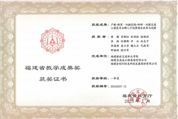 充分发挥国、省双高专业群优势,推动产教融合服务新质生产力发展。本着“合作办学、合作育人、合作就业、合作发展”的理念,顺应职业教育发展需要,以“五通六共”打造交通土建专业群“三教协同共同体”,与中铁建设集团有限公司、中国交通建设集团有限公司、中建海峡建设发展有限公司、中建四局建设发展有限公司、福建高速集团有限公司、福建省交通科技发展集团、建发合诚工程咨询集团股份有限公司、福建省交建集团等业内龙头企业开展校企合作,共建产教融合实训基地,获批省级开放型闽台产教融合实践中心。与中国公路工程咨询集团有限公司、北京工业大学共同牵头成立全国智慧与绿色交通产教融合共同体,与福建省交通科技发展集团有限责任公司共建智慧公路产业学院,联合打造校企合作典型生产实践项目;与行业龙头企业合作开展现场工程师、订单班人才培育项目,相关实践成果获国家级教学成果二等奖2项,福建省教学成果特等奖1项、一等奖3项。学生培养质量高,近五年初次就业落实率平均在95%以上,位居全省高职院校同类专业前列。
