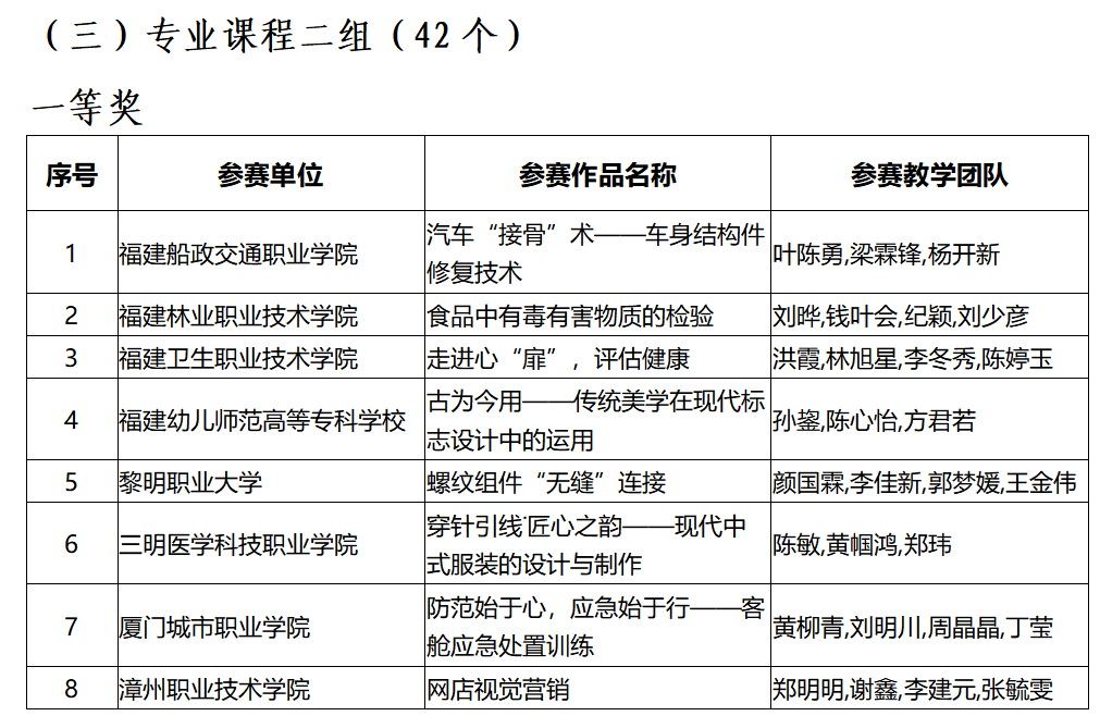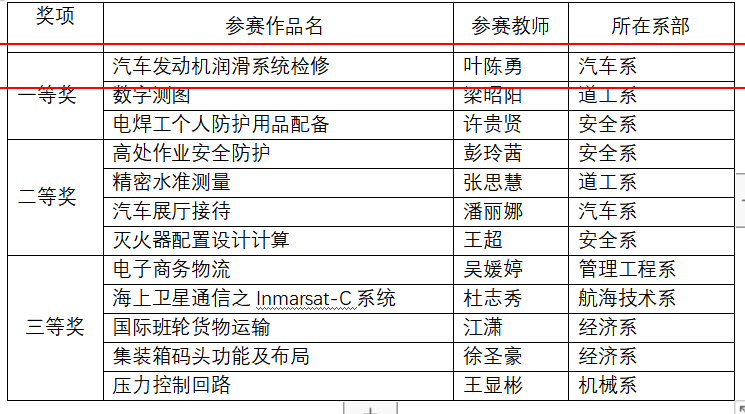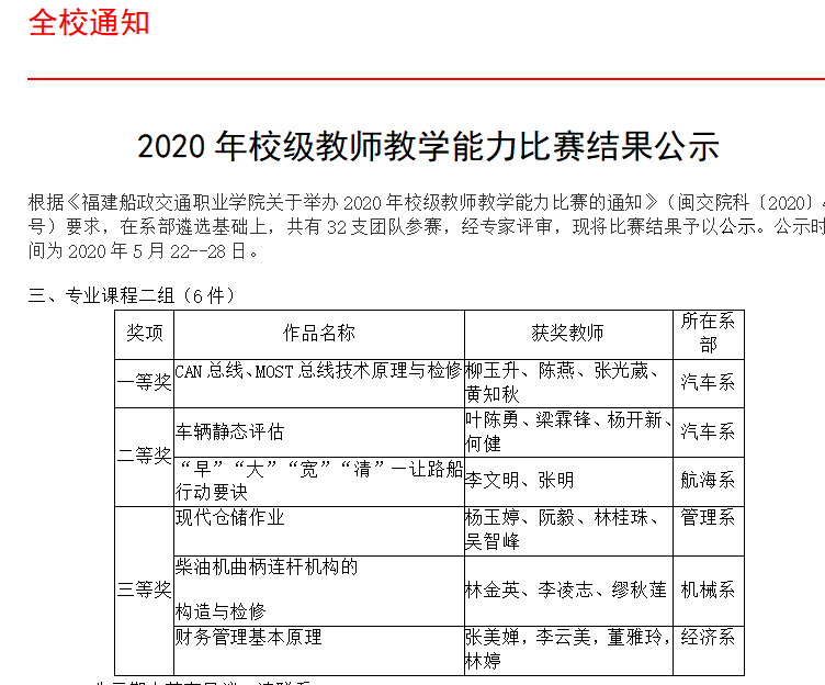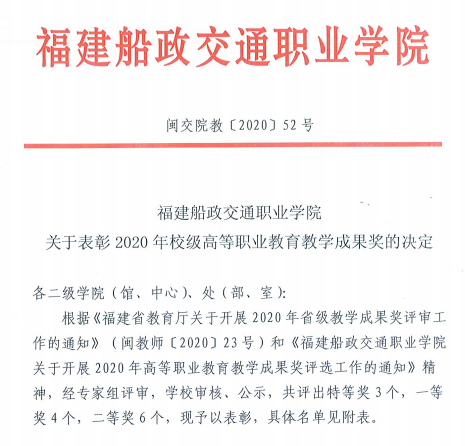 (十)2017-2022年被福建船政交通职业学院评为校教学成果奖一等奖、二等奖、二等奖