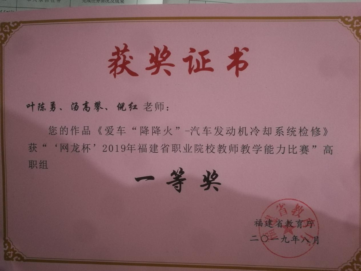 (六)2018、2019、2020年9月被福建省教育厅评为福建省职业院校教师教学能力大赛二等奖、一等奖、一等奖