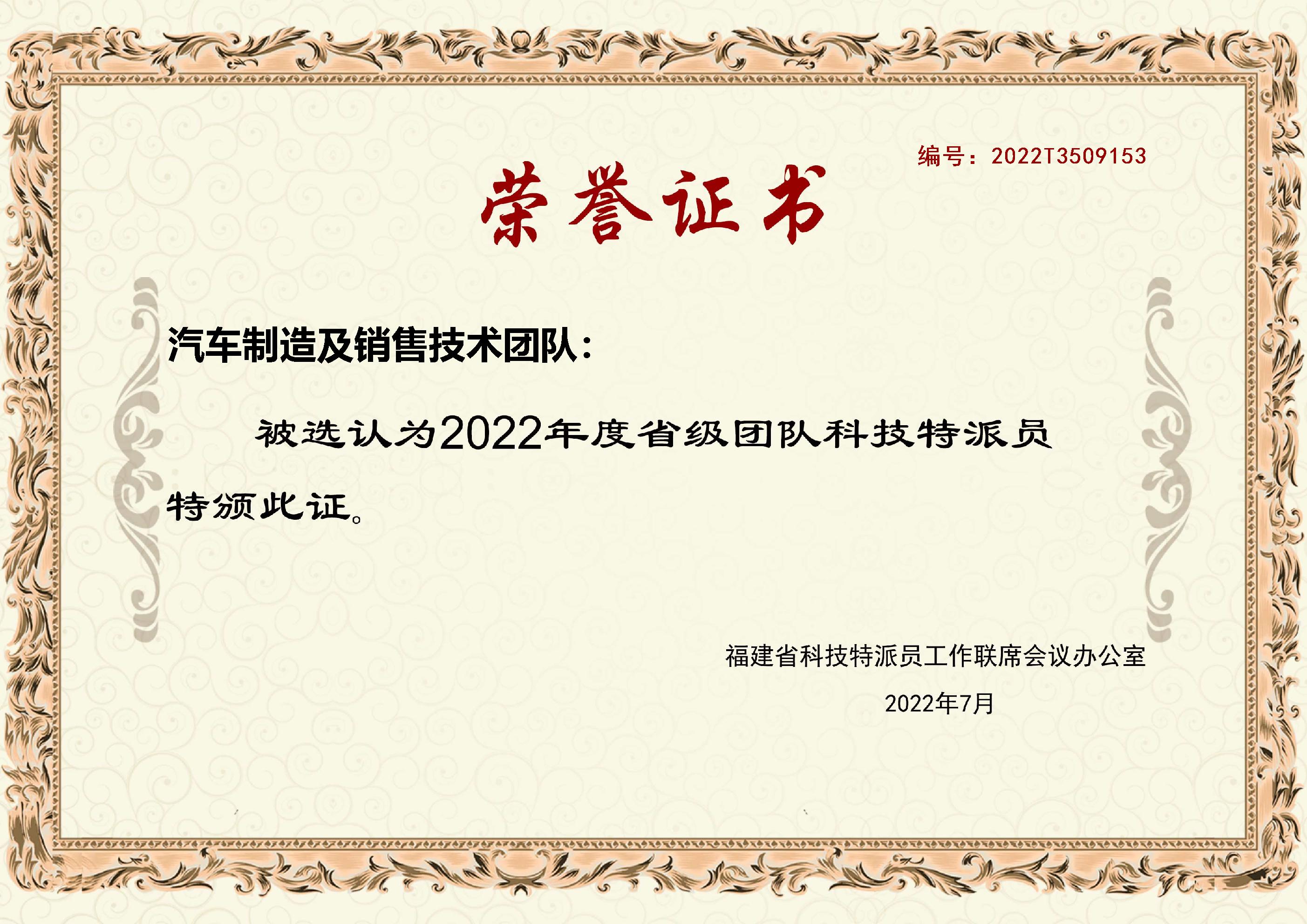 (五)2021年12月、2022年7月被福建省科技特派员工作联席会议办公室(福建省科学技术厅)选任为个人科技特派员、团队科技特派员