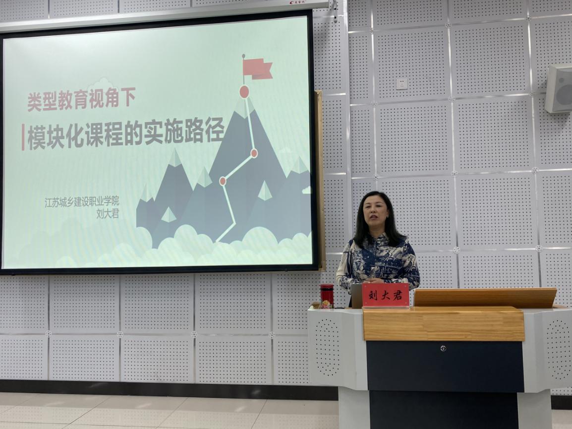 江苏城乡建设职业学院教育技术与信息中心主任、全国教师教学能力大赛评审专家刘大君以《类型教育视角下模块化课程的路径》为题,从课程的模块化改革、模块化课程的设计、项目式教学的实施等三部分内容分析授课,结合教师教学能力大赛精典案例,给了我院教学创新团队教师极大的启发。