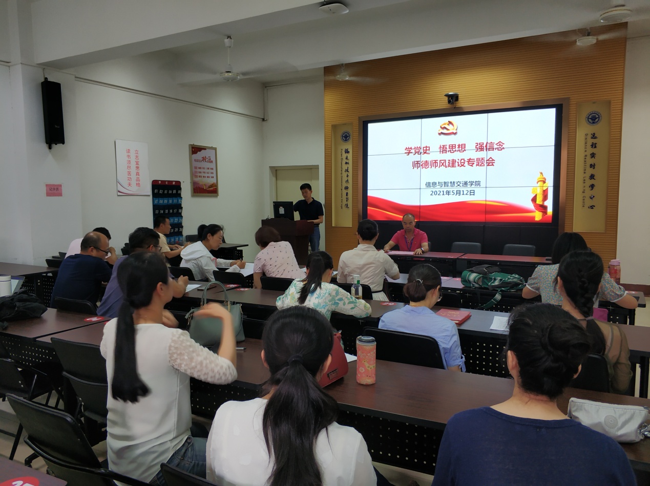 2021年5月12日,我院组织召开“学党史 悟思想 强信念”为主题的师德师风建设专题会,全体教职工参加会议,会议由党总支书记许友孝主持。