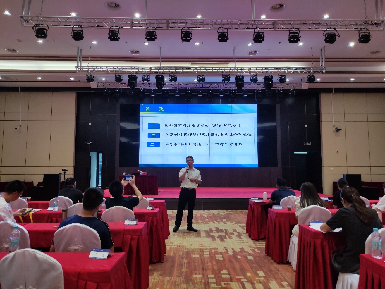 此次培训深入贯彻《中共中央 国务院关于全面深化新时代教师队伍建设改革的意见》和《国家职业教育改革实施方案》精神, 围绕提升教师队伍建设水平这一中心任务,从宏观视野、教师发展、团队建设、课程思政、教学改革、师德师风、实践教学等方面全方位精心安排课程。