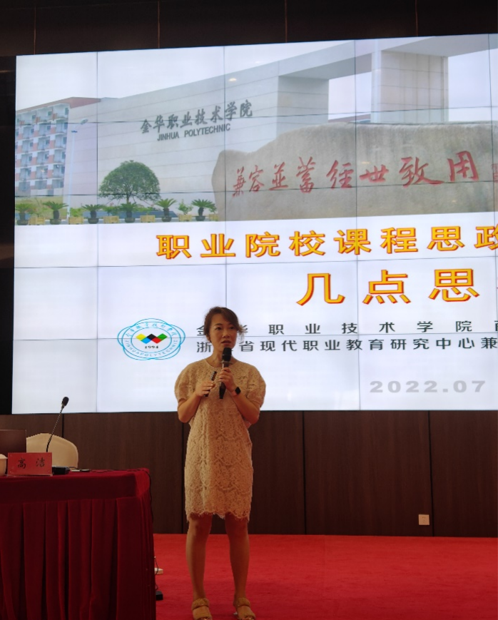 金华职业技术学院商学院副院长、金华市新世纪321人才第二层次人才、金华市宣传文化系统“五个一批”人才高洁教授以《职业院校课程思政教学设计》为题,以丰富详实的案例向学员们剖析了在职业院校课程思政教学设计中应该如何重视课程思政的思政味,守牢课程思政的职业味,做实课程思政的特色性。