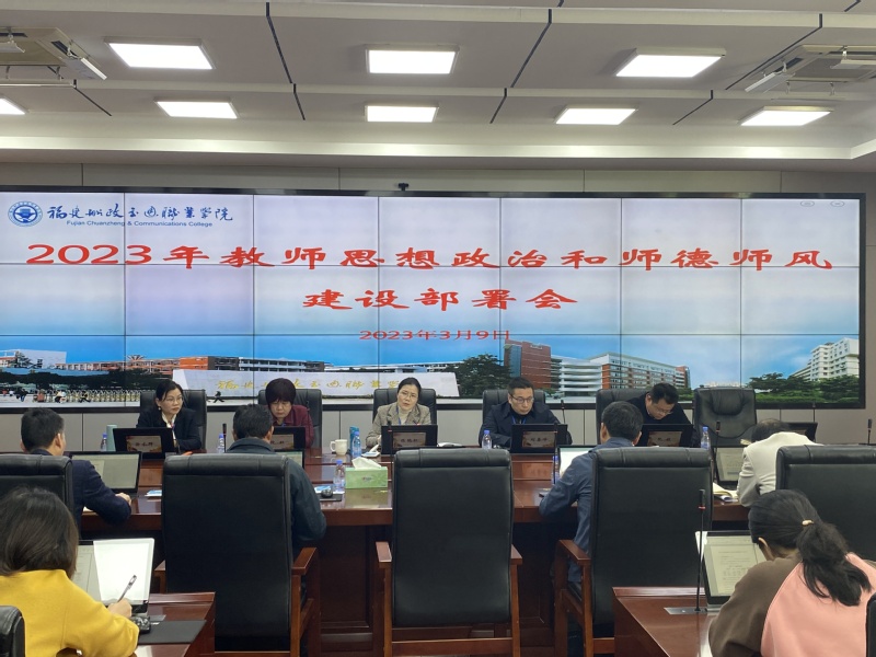 为深入学习贯彻习近平总书记关于教育的重要论述和和师德师风工作的重要指示精神,贯彻落实党的二十大报告中提出的“加强师德师风建设,培养高素质教师队伍,弘扬尊师重教社会风尚”的重要决策部署,持续加强和推进教师思想政治素质和师德师风建设,3月9日,学校召开了2023年教师思想政治和师德师风建设部署会。学校党委委员、副校长陈艳红,各二级学院党总支书记、党委教师工作部、教务处、效能办等负责人出席了会议。