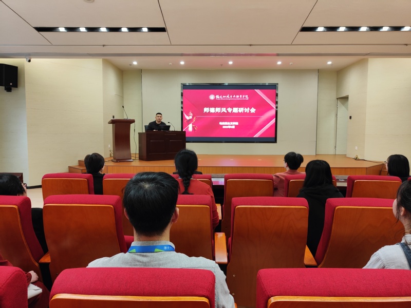 研讨环节,学院副院长马锦辉带领全体教师共同学习了《严禁教师违规收受学生及家长礼金等行为的规定》(教监〔2014〕4号)、《关于建立健全高校师德建设长效机制的意见》(教师〔2014〕10号)、《新时代高校教师职业行为十项准则》(教师〔2018〕16号),重申教育部"六禁令"、"红七条"、“十项准则”,深入学习、深刻领会各项规定主要内容,引导教师们坚决做到不踏红线、不跨雷区,共同加强学院师德师风建设,筑牢师德防线。