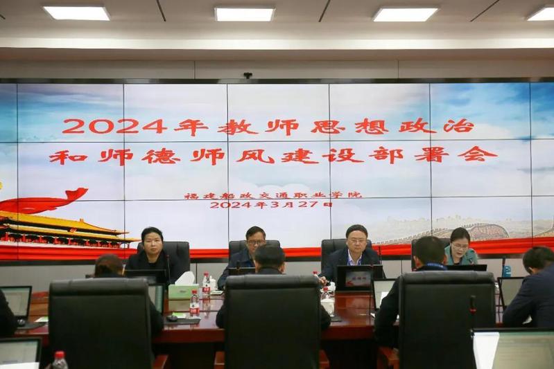 近日,我院召开了2024年教师思想政治和师德师风建设部署会。学院党委书记陈宜大,党委副书记、院长陈锦辉,党委委员、纪委书记张辉,党委委员、副院长陈艳红出席会议。各部门负责人、二级学院党政负责人参加此次会议。会议由党委委员、副院长陈艳红主持。