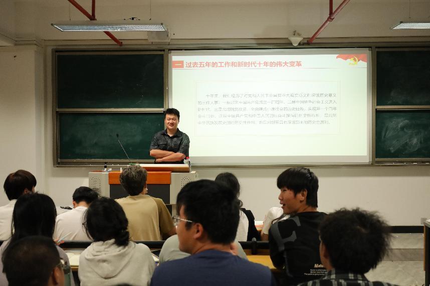 为深入开展学习贯彻习近平新时代中国特色社会主义思想主题教育,强化对学生的思想政治引领,引导动员学生学习党的二十大精神,坚定跟党走,建功新时代,2023年5月30日,轨道交通学院2020级学生党员张宇以“学习党的二十大,砥砺奋进新征程”为题,为轨道交通学院学生进行主题教育专题宣讲。