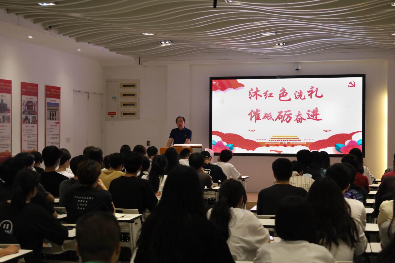 为进一步深入学习贯彻习近平新时代中国特色社会主义思想,扎实开展主题教育工作,切实提高入党积极分子的理论水平、政治素养和思想觉悟,严把党员发展质量,5月23日轨道交通学院副处级组织员刘明以“沐红色洗礼,催砥砺奋进”为主题,为学院入党积极分子上了一堂生动的专题党课。