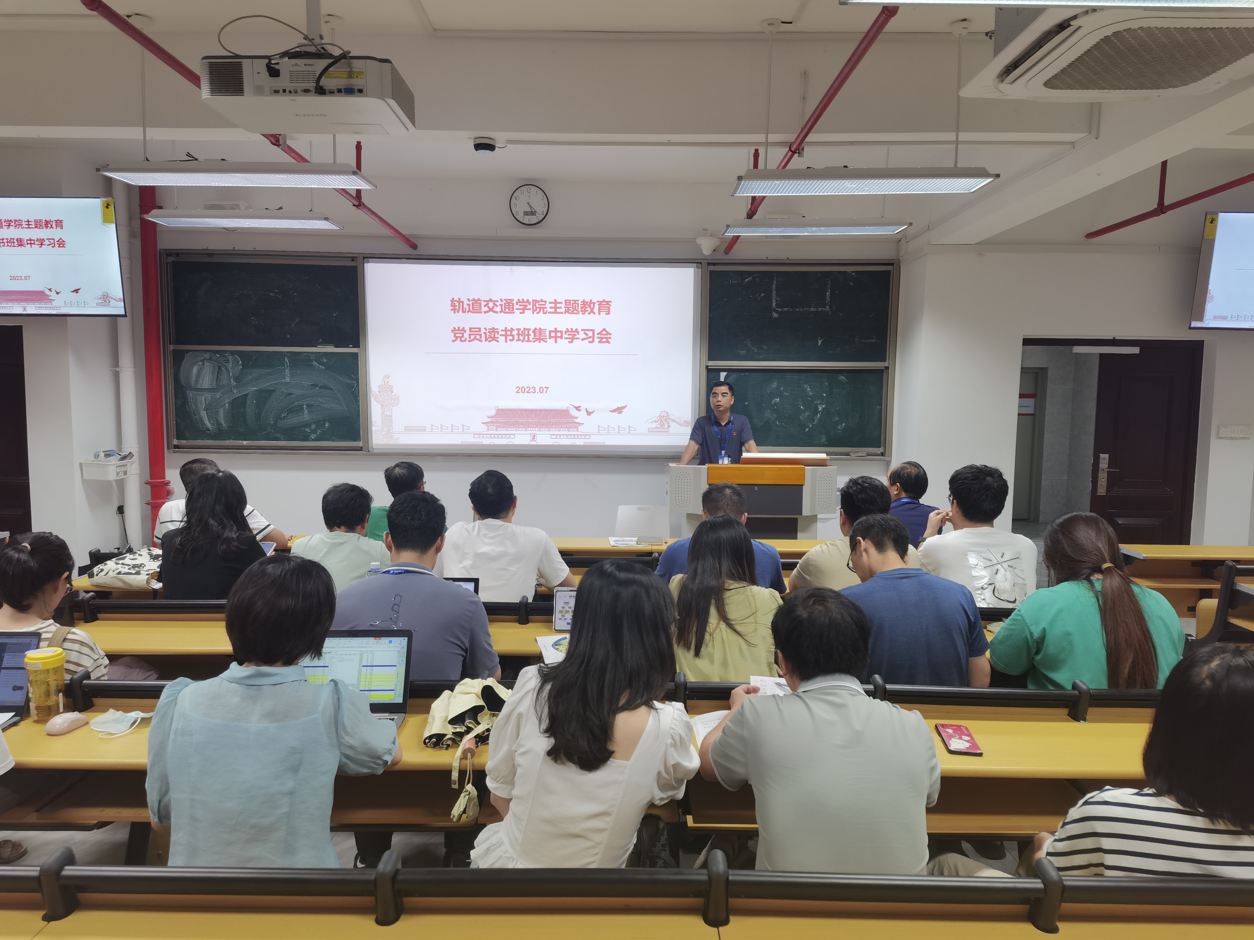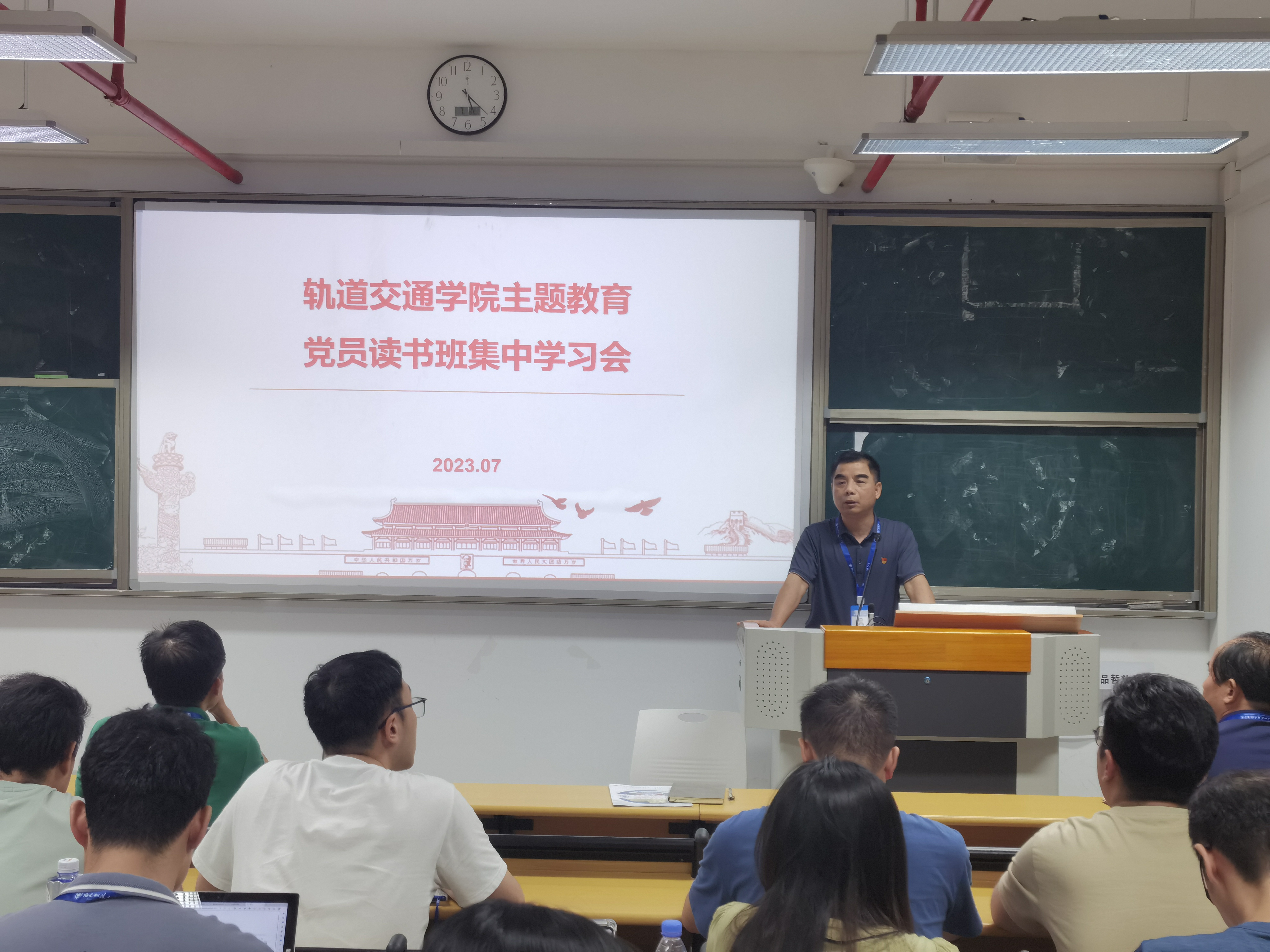 2023年7月3日,轨道交通学院党总支组织全体教职工集中学习《习近平新时代中国特色社会主义思想的世界观和方法论专题摘编》,本次会议由轨道交通学院党总支书记孙基主持。