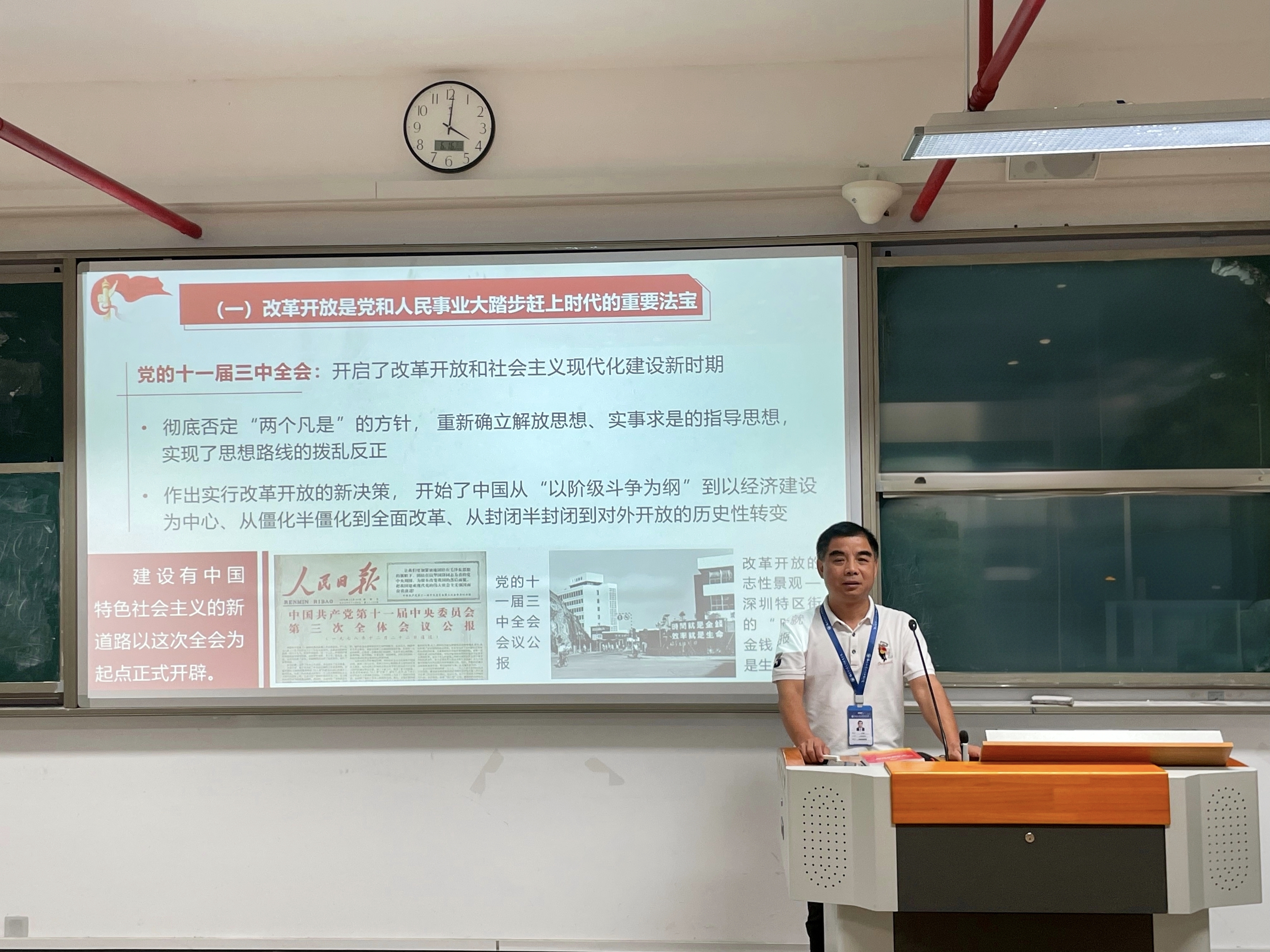 为深入学习贯彻党的二十届三中全会精神,进一步加深学院全体教职工对《中共中央关于进一步全面深化改革、推进中国式现代化的决定》的学习理解,9月4日,轨道交通学院党总支书记孙基进行专题宣讲,轨道交通学院全体教职工参加会议。