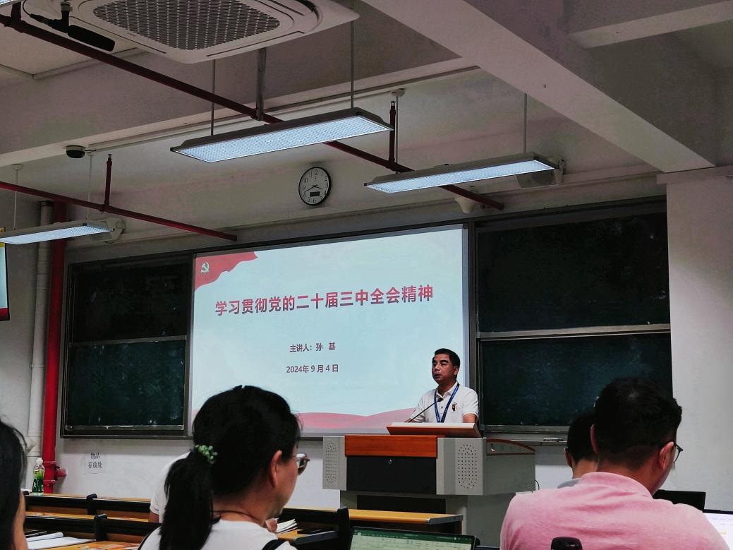 孙基书记指出,学习好、宣传好、贯彻好党的二十届三中全会精神是当前和今后一段时期的一项重大政治任务。要引导全体教师和学生把思想和行动统一到全会精神上来,把智慧和力量凝聚到落实全会确定的目标任务上来,更加坚定拥护“两个确立”、坚决做到“两个维护”。