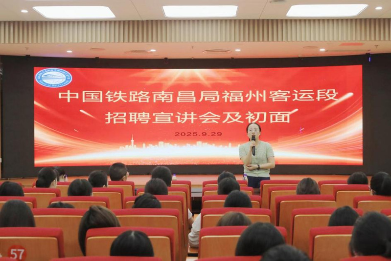 招聘宣讲会在艺新楼学术报告厅举行,吸引了相关专业众多在校生积极参与,更有部分应往届毕业生专程返校了解岗位信息,现场氛围热烈。招聘团队详细介绍了企业发展历程、业务布局及招聘岗位的具体要求,并对薪资待遇、晋升机制与岗前培训等热点问题逐一解答。宣讲会后,招聘团队按岗位分组开展初次面试,通过专业问答、综合能力评估等环节,最终19名毕业生获得了首场南昌局福州客运段招聘会的录用机会。