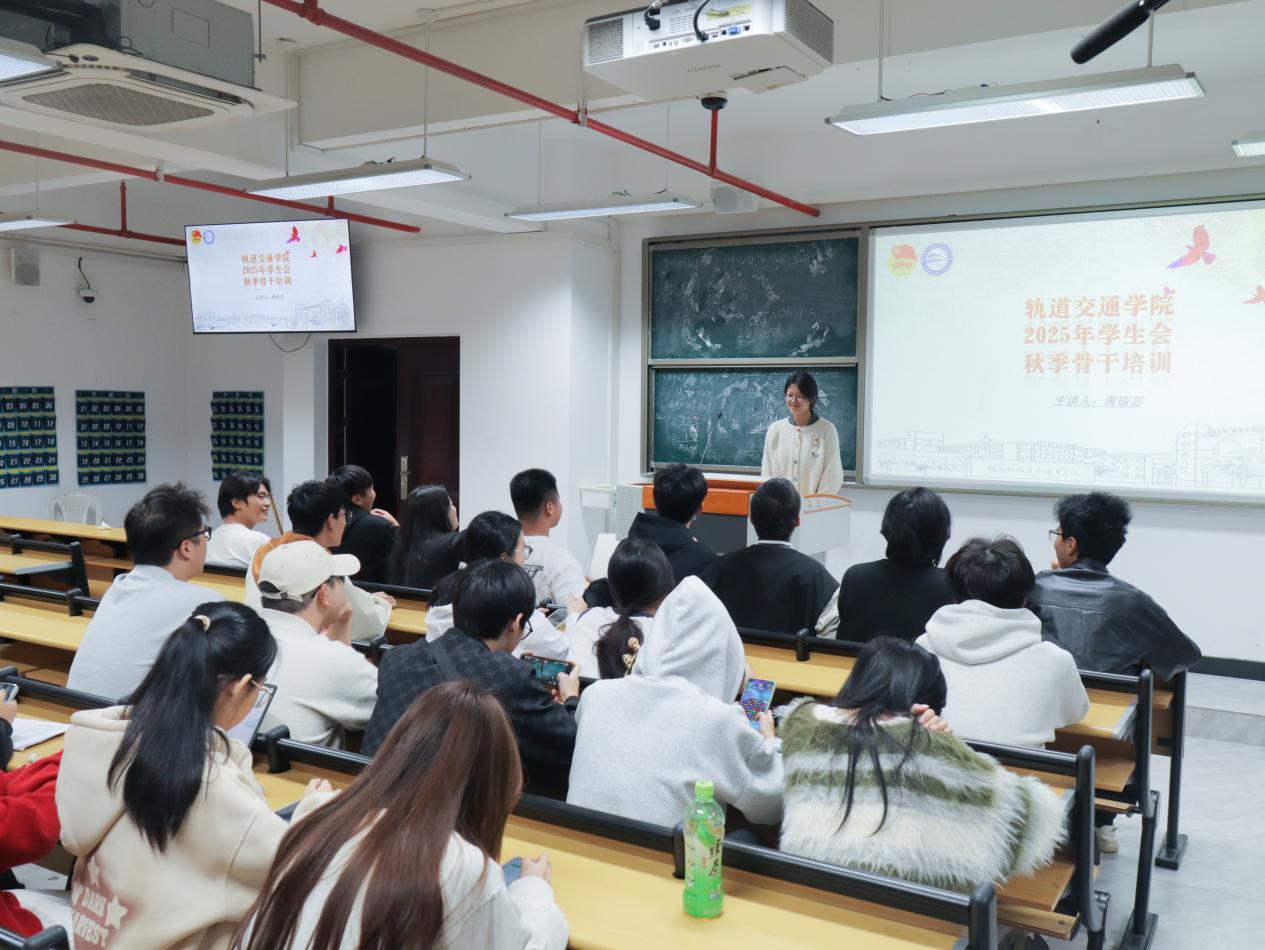 为进一步加强轨道交通学院学生干部队伍建设,提升学生骨干的综合素质与工作能力,2025年11月10日,轨道交通学院2025年学生会秋季骨干培训在福船园艺新楼707成功举行。本次培训面向2024级学口、自律会以及红十字会两委干部,旨在培养一批政治坚定、作风优良、能力突出的学生干部。
