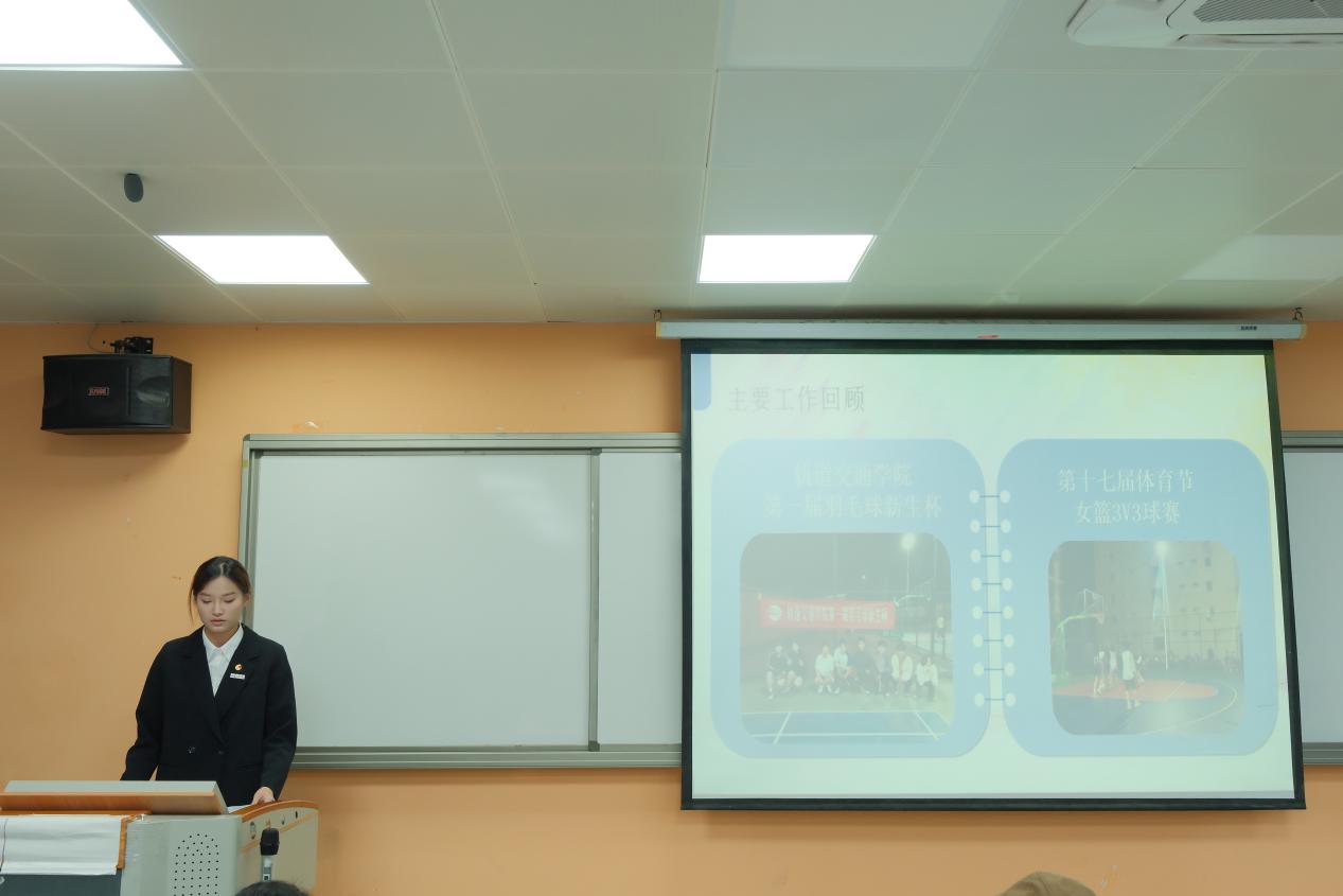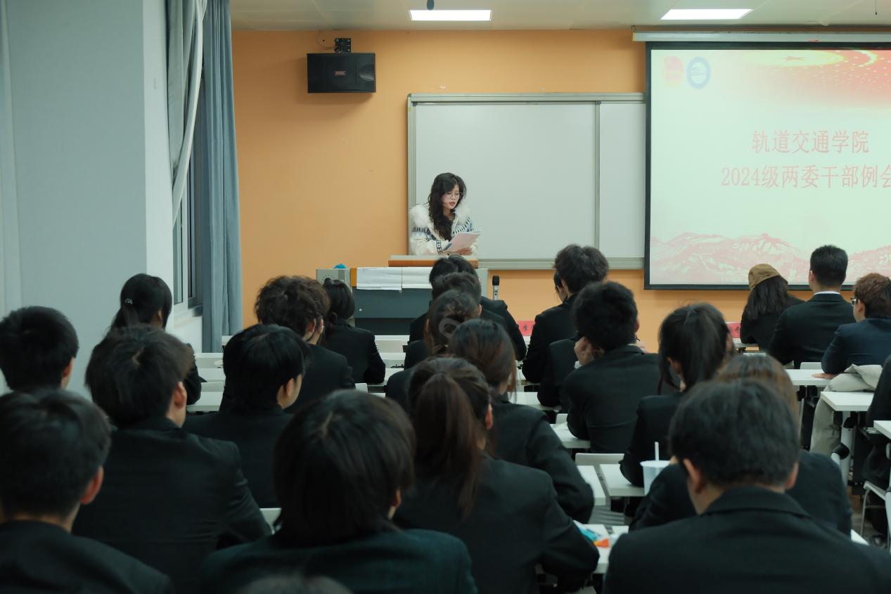 2025年12月24日,轨道交通学院2025年分团委学生会述职大会在经管楼307教室举行。轨道交通学院全体辅导员及各部门负责人参会。本次会议由轨道交通学院团委学生会主席黄瑞芸主持。