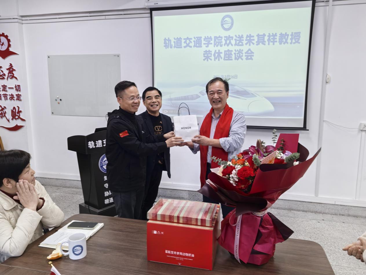 此次荣休欢送会,既充分表达了学院对退休教师的崇高敬意与真挚关怀,也传承了尊师重教、敬业奉献、薪火相传的优良风尚。轨道交通学院将以朱其祥教授为榜样,坚守育人初心、勇担时代使命,奋力推动学院各项事业再上新台阶。
