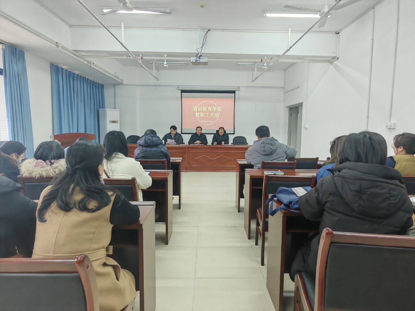 2月19日,福建船政交通职业学院通识教育学院在图书馆1013室召开新学期全体教职工大会,会议聚焦学习贯彻全国、全省教育大会精神,全面谋划和部署新学期教育教学各项工作。学院领导及全体教职工参加会议。