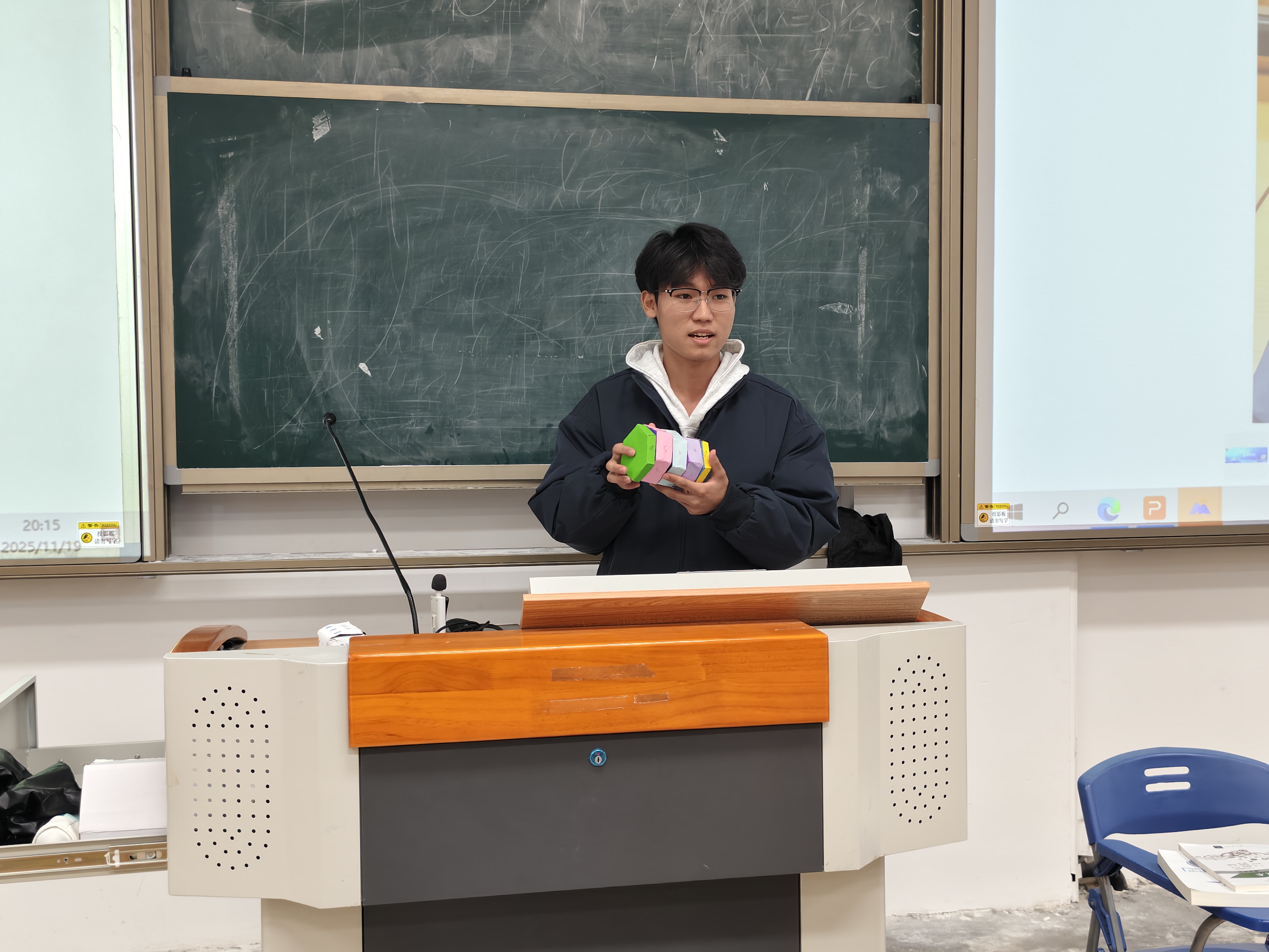 手工类竞赛中,经济与管理学院、信息与智慧交通学院林倩、金丹丹、陈冠吉团队的作品《几何绽放——镂空立方体花环》凭借其精妙的几何结构与卓越工艺拔得头筹,荣获一等奖。航海学院翁华勇、陈发坤团队制作的《幻海星棱》与经济与管理学院闫和鹭、黄思旗团队利用普通A4纸创作的《A4纸造浪机:手工匠心的海浪礼赞》共同获得二等奖,前者蕴含了空间几何的奥秘,后者则生动演绎了数学与航海专业融合呈现数学之美。三等奖由经济与管理学院、机械与智能制造学院、信息与智慧交通学院林倩、谢纪楷、金丹丹团队的结构力学佳作《“三角基”张拉整体结构》,以及土木工程学院方永翠充满诗意的作品《春》收入囊中。
