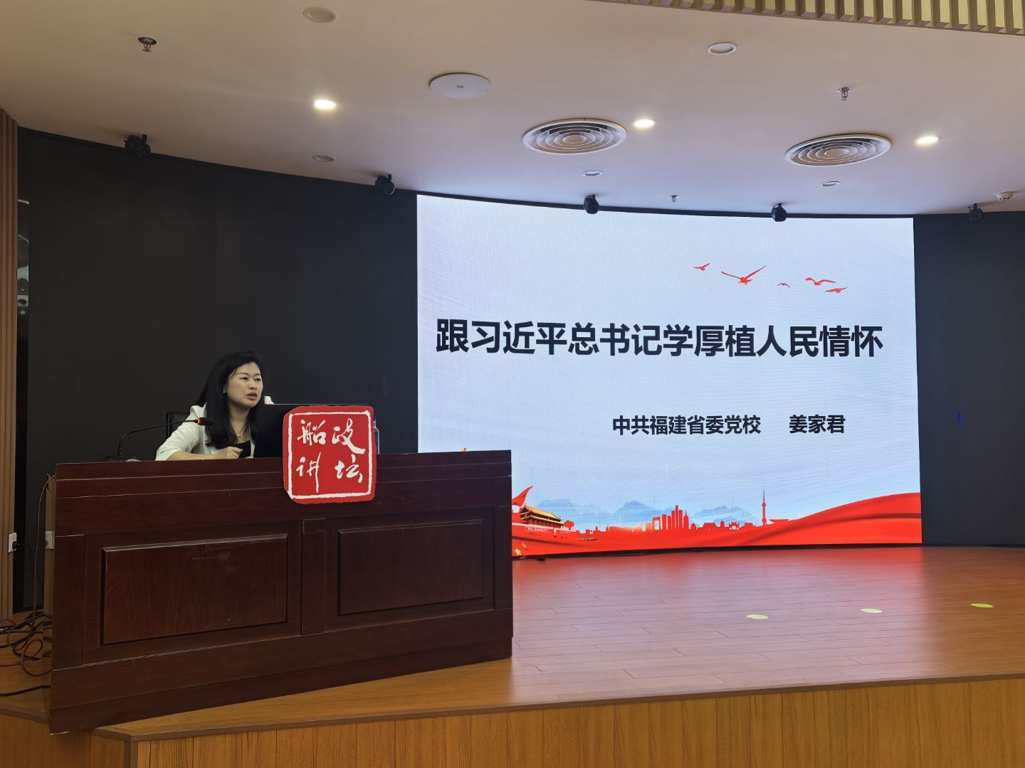 6月18日,通识教育学院在艺新楼334学术报告厅举办师德师风专题学习教育讲座。讲座特邀中共福建省委党校(福建行政学院)哲学教研部副主任、教授姜家君作题为《跟习近平总书记学厚植人民情怀》的专题辅导。姜教授从“为什么学、学什么、怎么学”三个维度,系统阐释了习近平总书记深厚的人民情怀及其躬身实践的感人事迹,引导全院教师深刻领会“以人民为中心”的发展思想,并将其内化为教书育人、立德树人的行动自觉,筑牢为党育人、为国育才的初心使命。