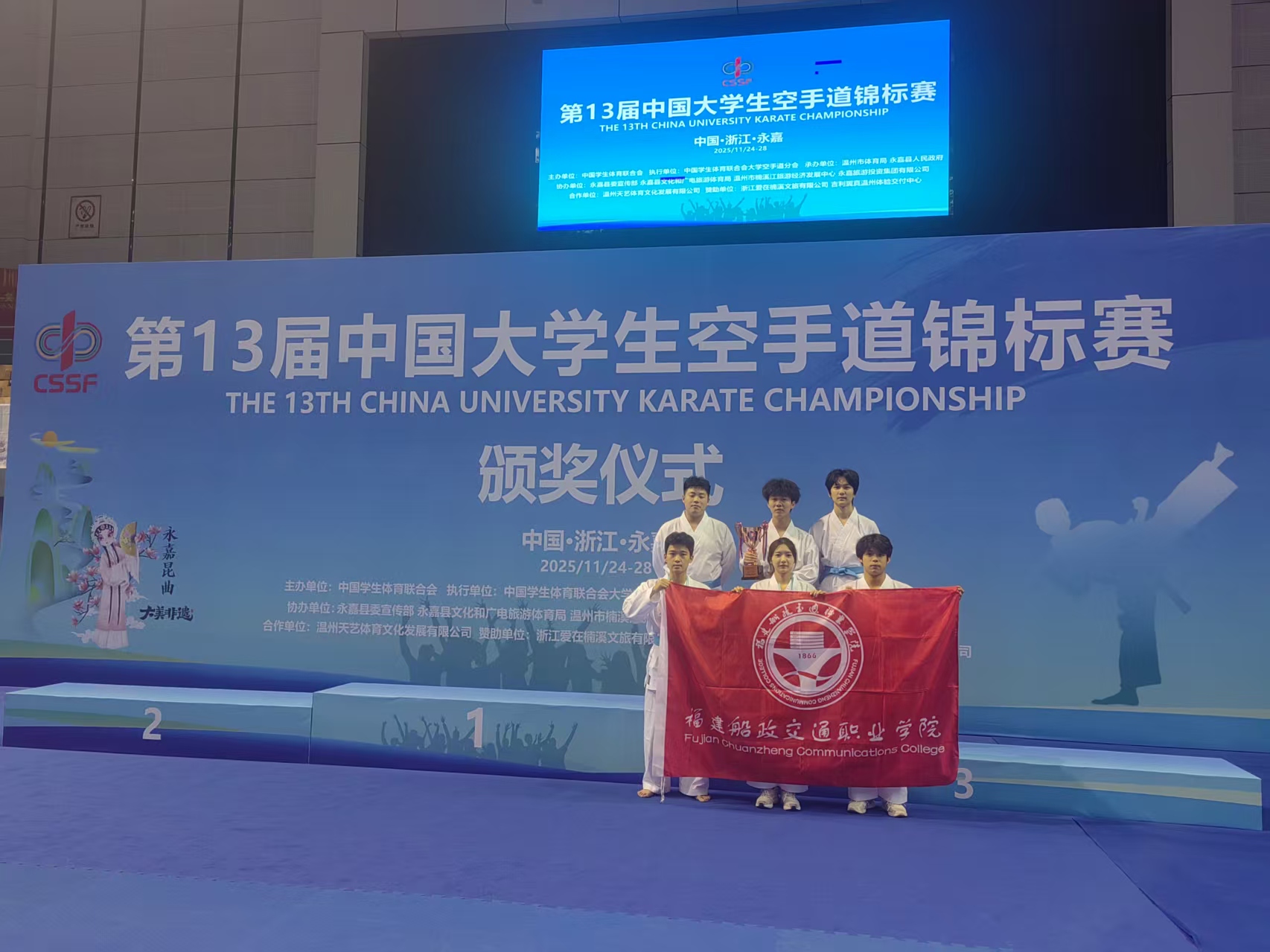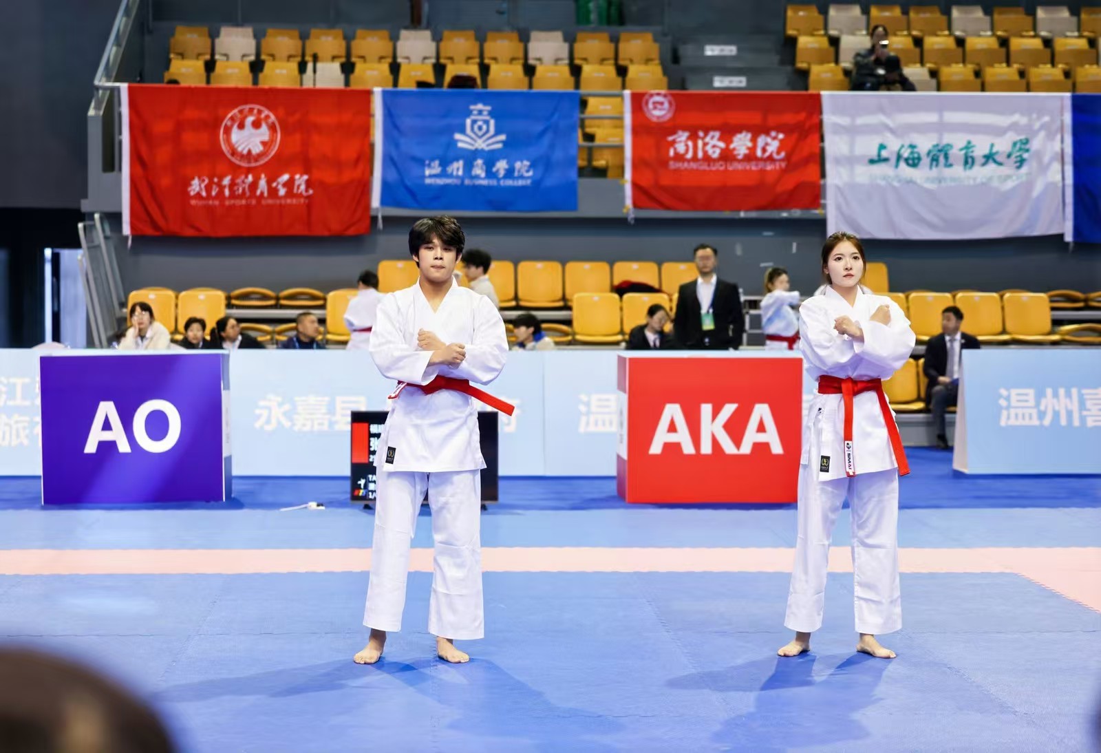 近日,第13届中国大学生空手道锦标赛在浙江温州圆满落幕。作为国内大学生空手道最高级别赛事,本届比赛吸引了全国78所高校的数百名运动员同台竞技,竞争异常激烈。我校空手道代表队派出6名运动员参赛,在多个项目中奋勇拼搏、展现风采,最终以4枚铜牌、3个第五名的优异成绩为校争光,并荣获“道德风尚奖”和一名“优秀运动员”称号。