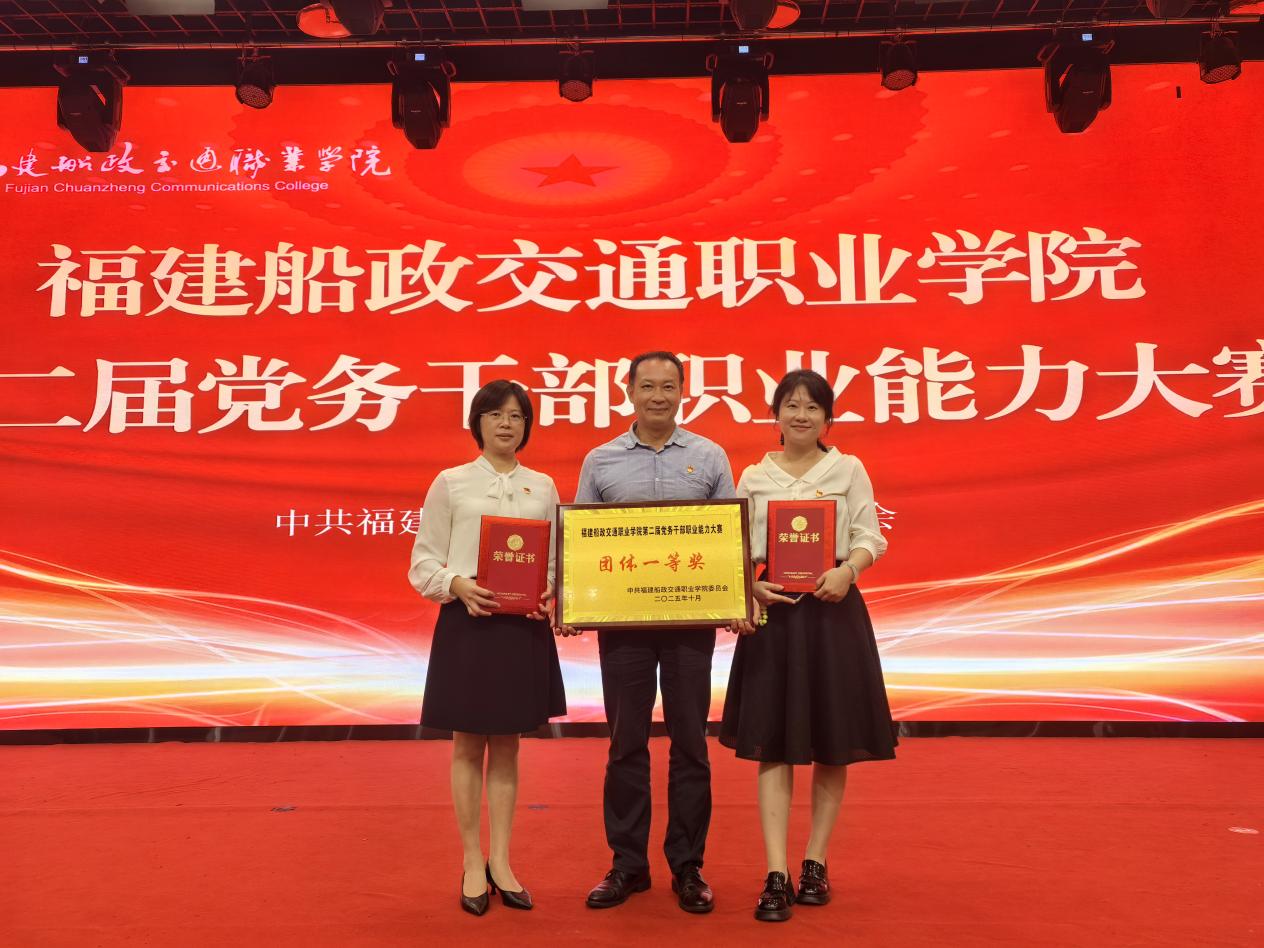 10月22日下午,学院第二届党务干部职业能力大赛圆满落幕。通识教育学院由党总支书记陈火城、支部书记于晓凌、章素苹三位同志组成的参赛队,经过激烈角逐,最终荣获大赛团体一等奖。