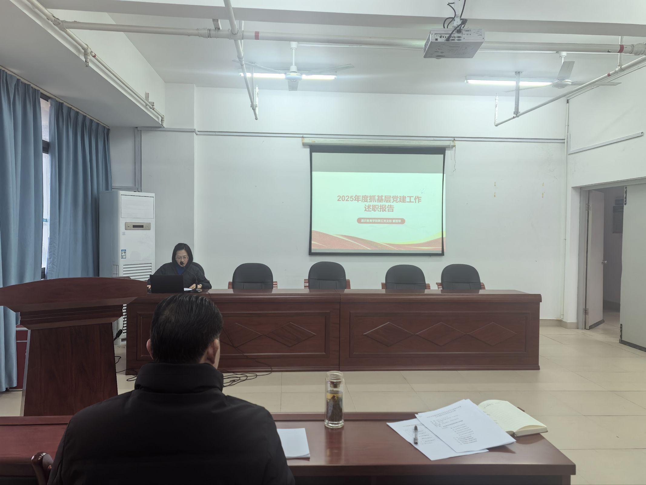 会上,五个支部依次进行现场述职。各支部书记围绕深入学习贯彻习近平新时代中国特色社会主义思想、落实立德树人根本任务、强化支部政治功能和组织功能、推动党建与业务深度融合、加强党员教育管理等方面,汇报了2025年度抓基层党建工作的主要举措、成效与不足,并提出了下一步改进计划。