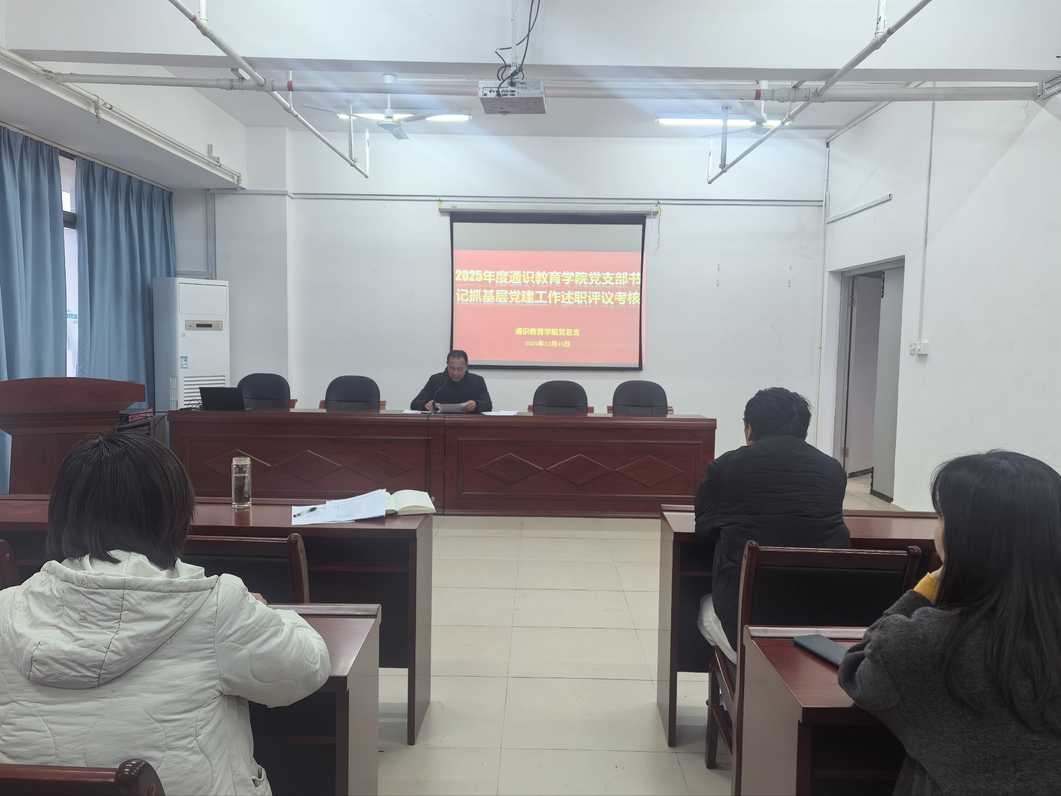 2025年12月31日,通识教育学院在福船园鉴知楼1013室召开2025年度党支部书记抓基层党建工作述职评议考核会议。会议由学院党总支书记陈火城主持,各总支委员、党支部书记、支部委员参加会议。