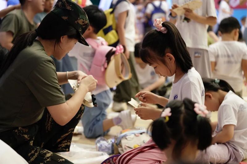 丰富多彩、手脑并用的研学实践让孩子们沉浸于趣味盎然的科学实验世界。“火山喷发”“声光电” 互动式探究性实验,激发孩子们科学兴趣;飞机结构、飞行原理、不同机型用途讲解,橡皮筋动力飞机模型制作,探索解码飞机飞行与设计奥秘;科创手工船舶制作和动力艇操控带来“小航模-大国防”的生动体验,让孩子们在创新思想与工程思维的碰撞激荡中,提升科学素养,培育科创思维和工匠精神。