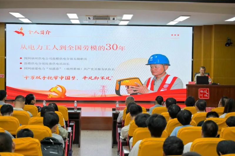 讲座中,黄站长以质朴语言讲述30年电力一线坚守故事:暴雨夜蹚水抢修、台风天获市民撑伞,从老一辈职工步行交接班的劳动精神启蒙,到带领团队攻克“龙王”台风136万户抢修难题。他结合工作室 “四融四带四库”体系,分享“刀片环削法”等创新成果及榜样传承力量,诠释“0.01毫米级”工匠精神的专注与严谨。最后,他以“岗位是时代锚点”勉励师生,将工匠精神融入日常,在平凡中锚定不凡坐标,以匠心点亮奋斗之路,为中国制造添砖加瓦。