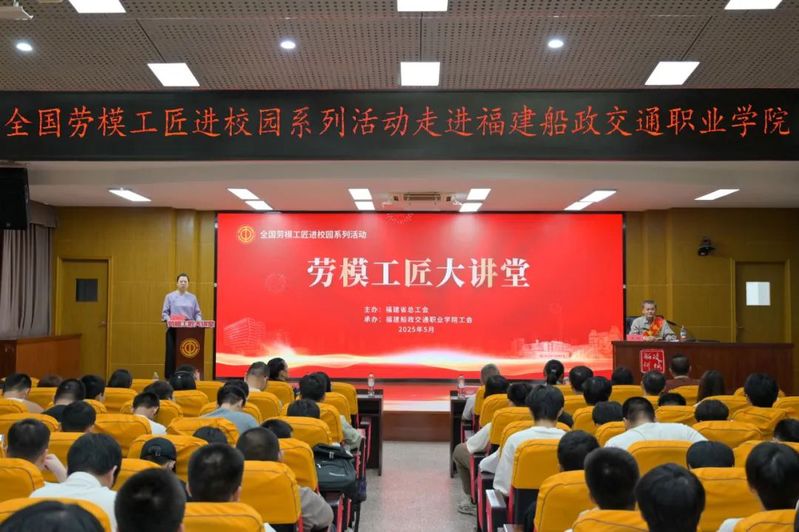 为深入学习贯彻党的二十大精神和习近平总书记在庆祝中华全国总工会成立100周年暨全国劳动模范和先进工作者表彰大会上的重要讲话精神,大力弘扬劳模精神、劳动精神、工匠精神,引导广大师生牢固树立“劳动最光荣、劳动最崇高、劳动最伟大、劳动最美丽”的价值观念,让崇尚劳动、尊重劳动的风尚在校园蔚然成风,5月22日下午,由福建省总工会主办、学院工会承办的“全国劳模工匠进校园系列活动-劳模工匠大讲堂”主题讲座在福道园1号楼学术报告厅举办。本次活动邀请到全国劳动模范、国网福州供电公司鼓楼坊巷供电站站长黄颂作主题为《在平凡中铸就不凡,用坚守点亮初心》的专题讲座,省教科文卫体工委二级调研员左修坤,学院工会、机械与智能制造学院党政领导班子及二百余名师生参加活动。
